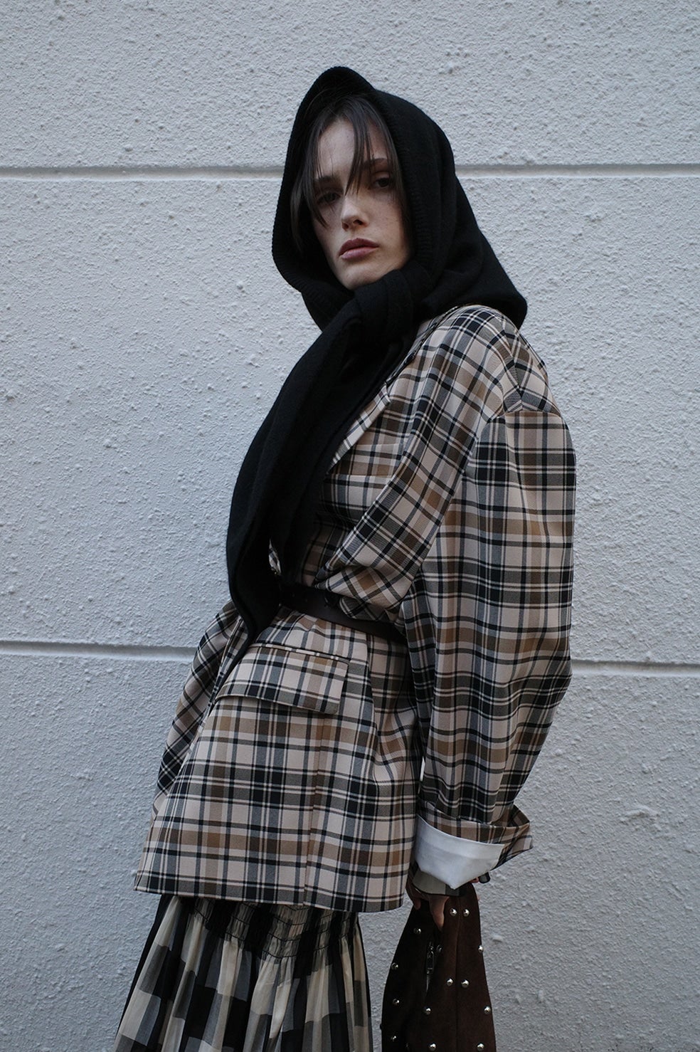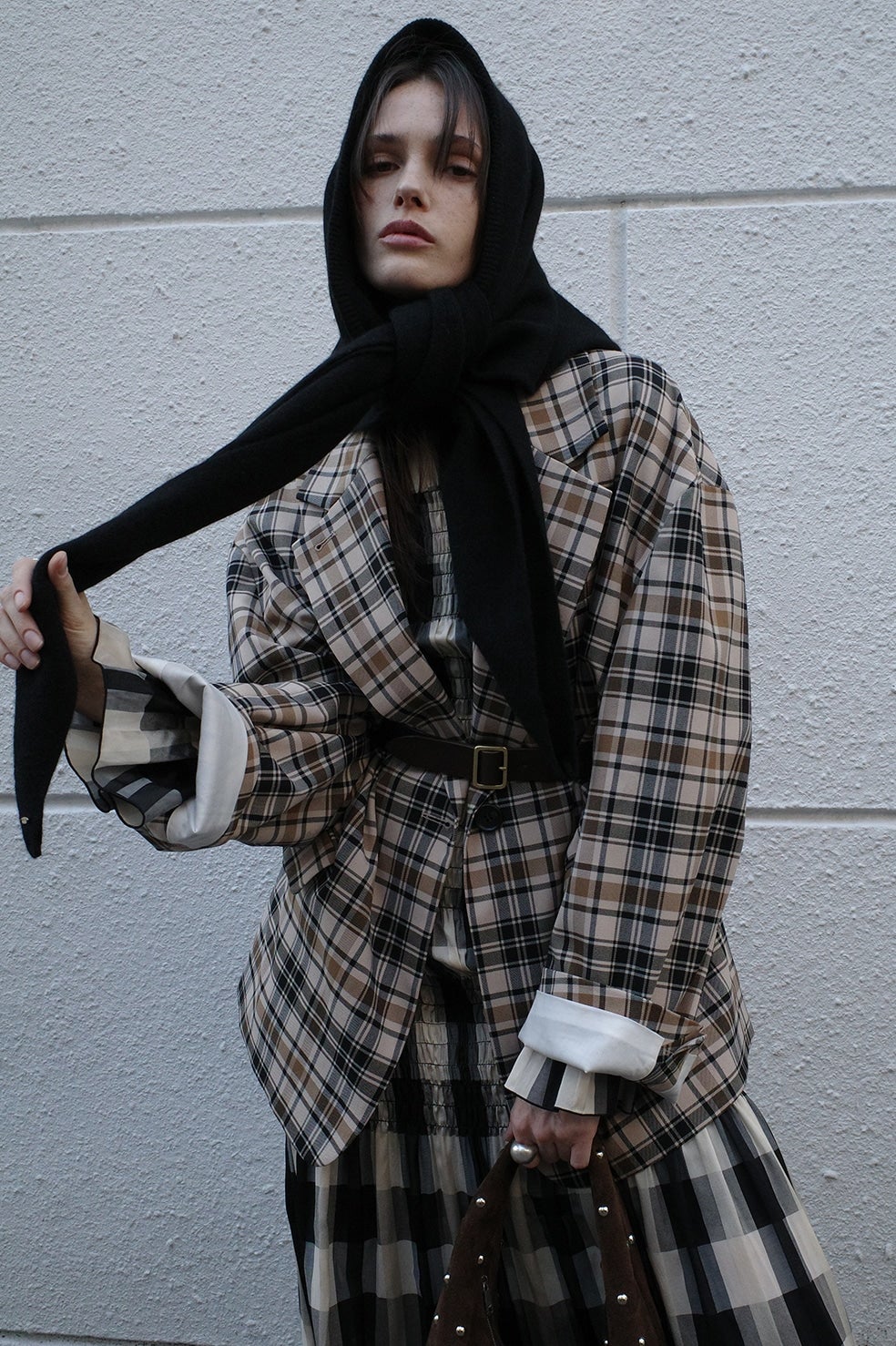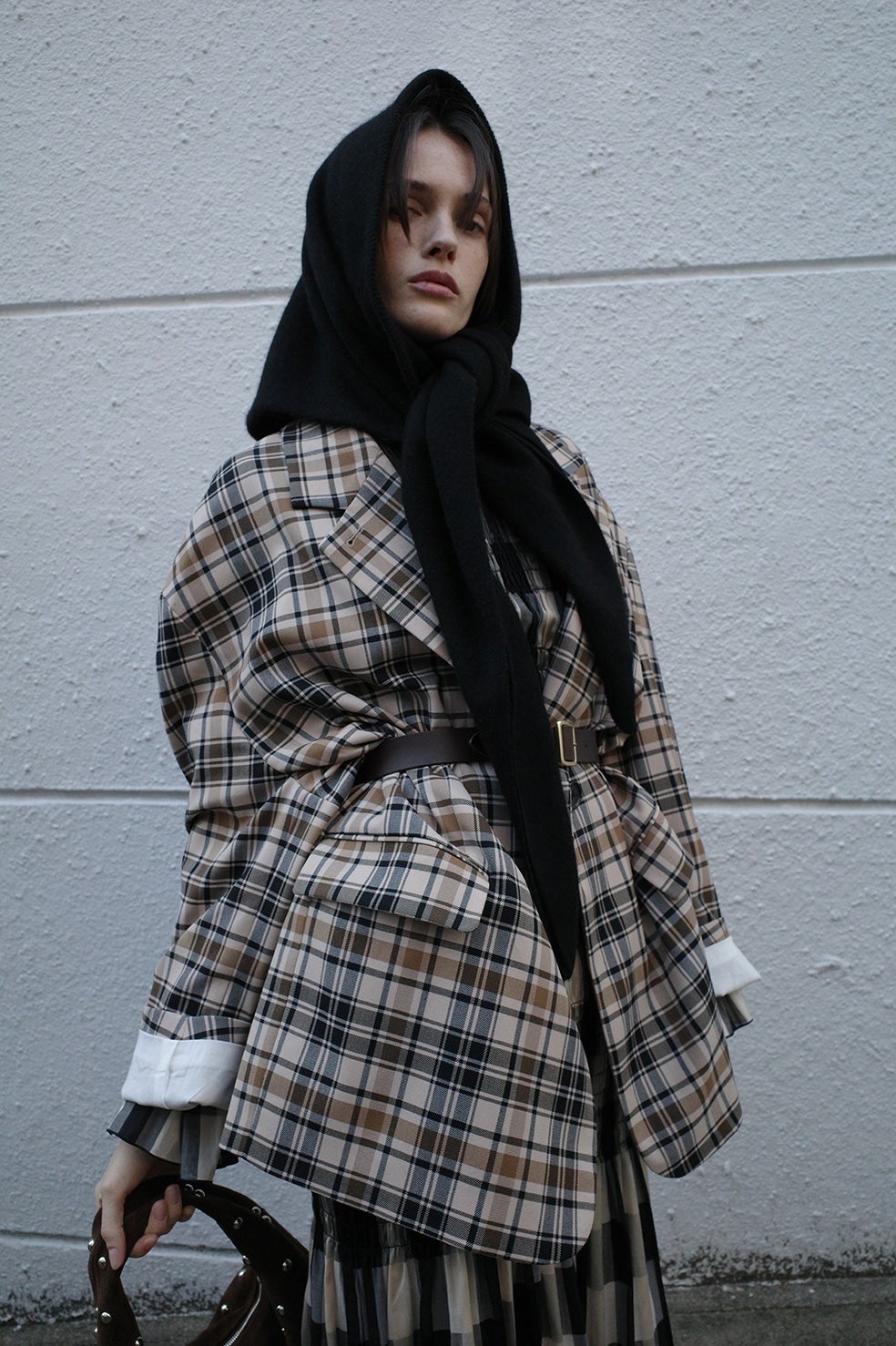冬の寒い季節に首や頭に巻いたり、腰に巻いたりと様々なスタイリングやアレンジができるアイテムです。先端にあしらったCLANEロゴプレートもポイントです。