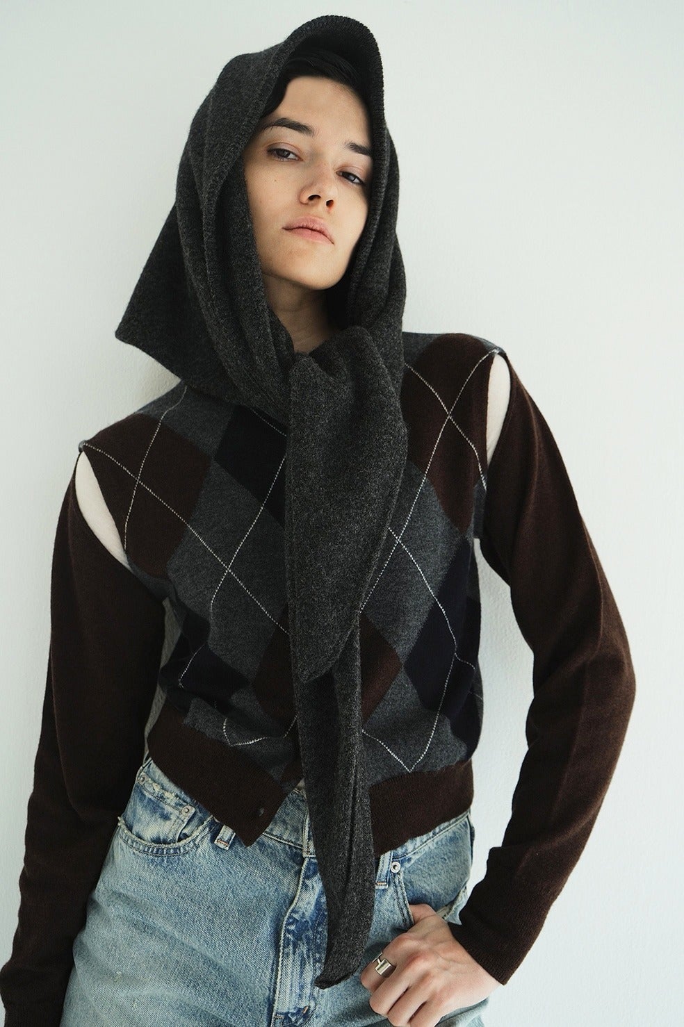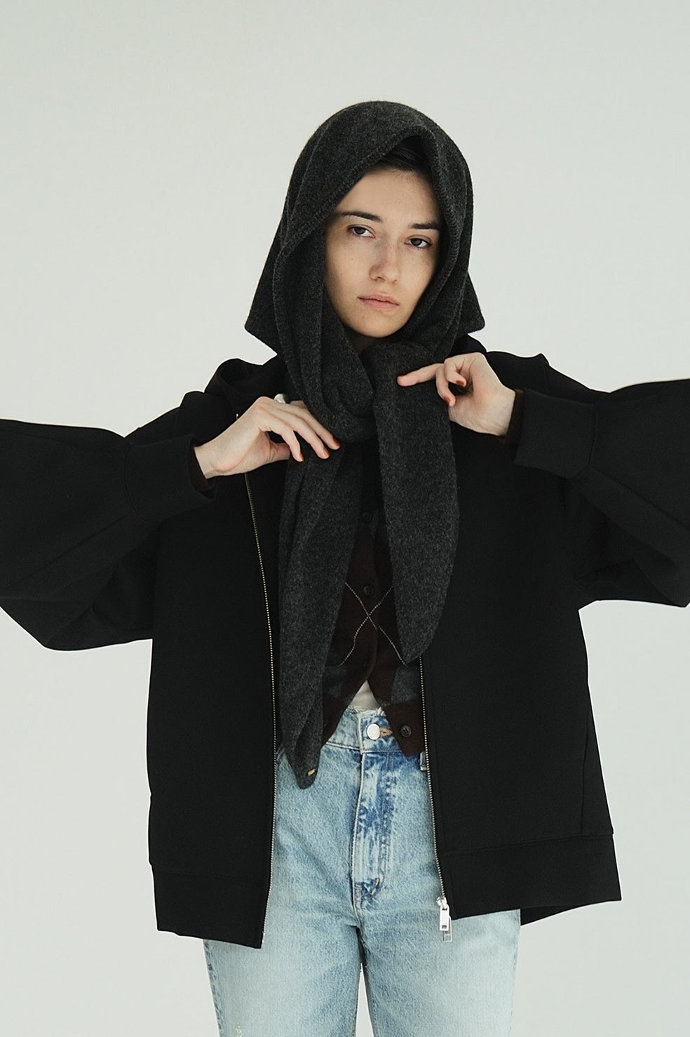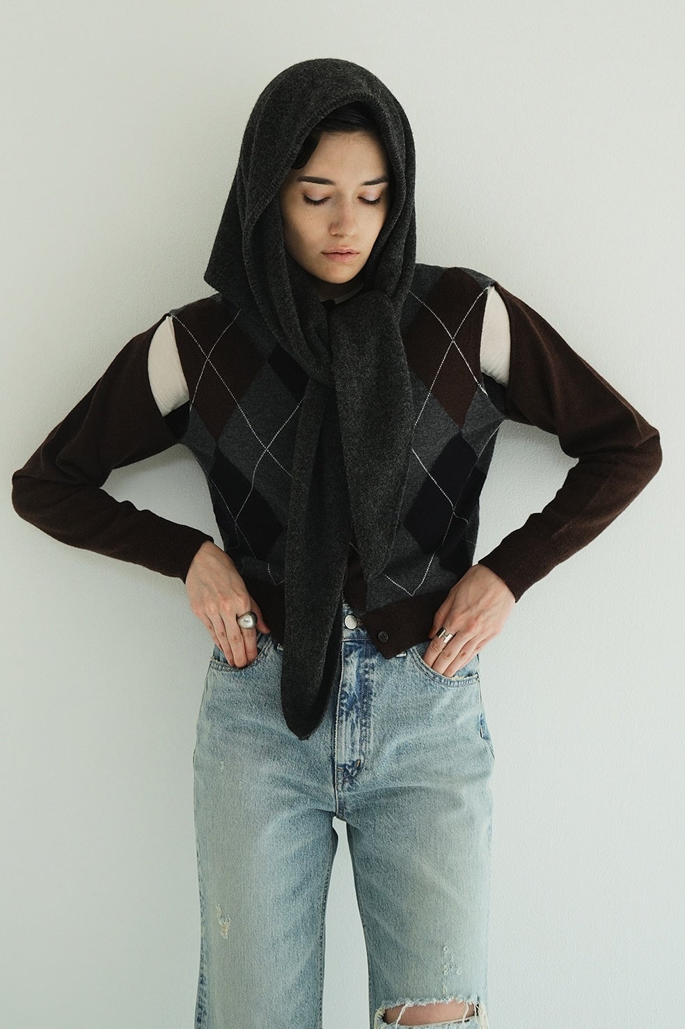 冬の寒い季節に首や頭に巻いたり、腰に巻いたりと様々なスタイリングやアレンジができるアイテムです。先端にあしらったCLANEロゴプレートもポイントです。