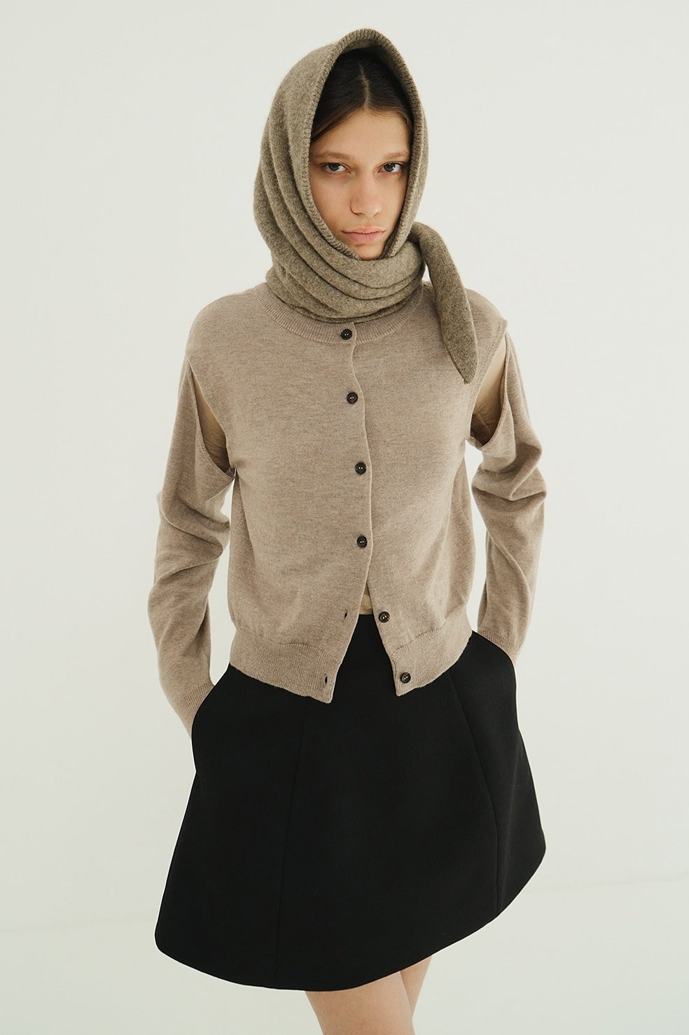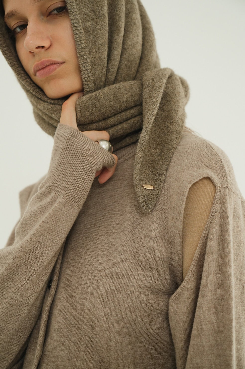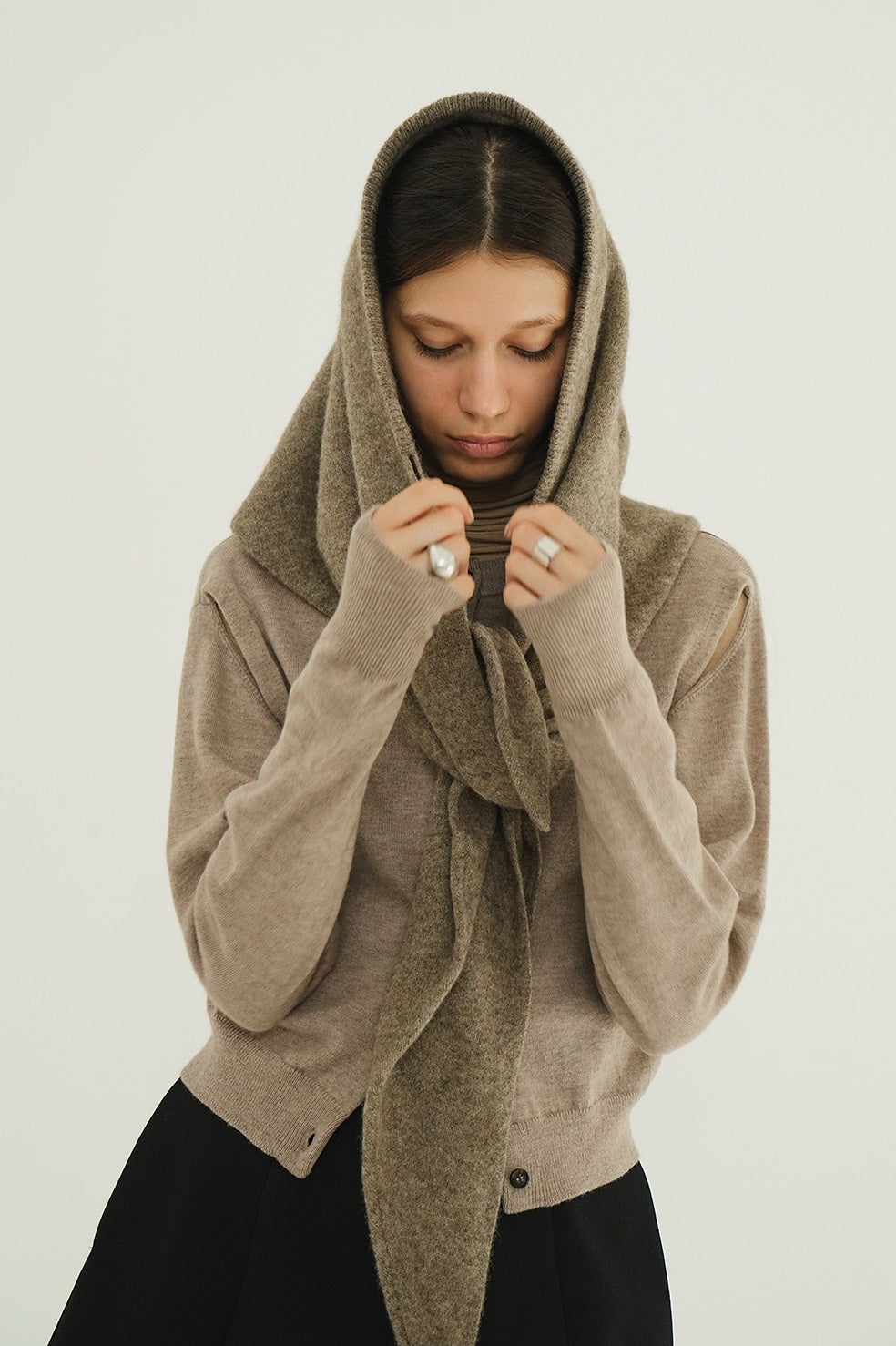 冬の寒い季節に首や頭に巻いたり、腰に巻いたりと様々なスタイリングやアレンジができるアイテムです。先端にあしらったCLANEロゴプレートもポイントです。