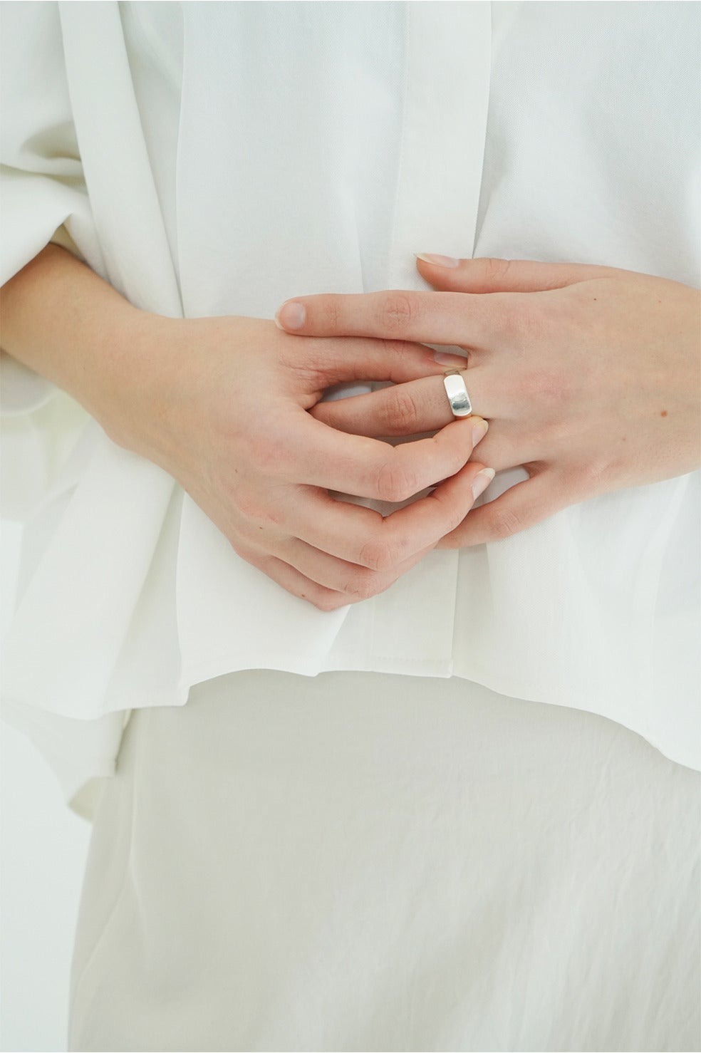 無駄を削ぎ落とした直線的なフォルムが、凛とした存在感を放ちます。シルバー925のやわらかな光沢が手元を上品に引き立て、シンプルながらも意思のある佇まいに仕上げました。