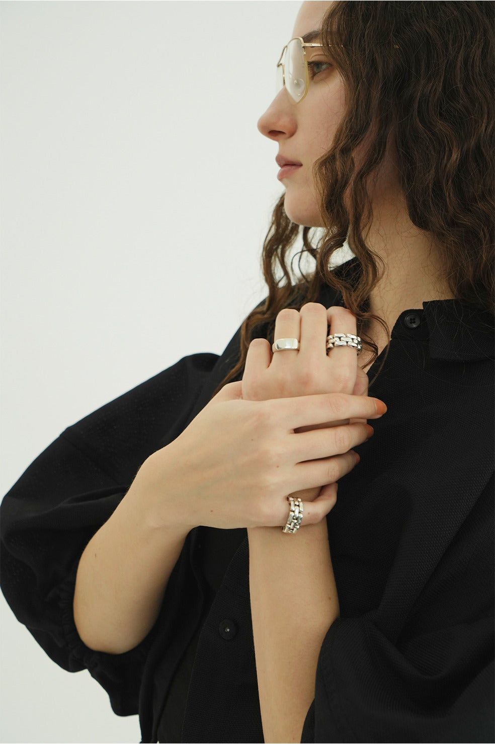 指先に奥行きのある輝きを添える、3リンクリング。