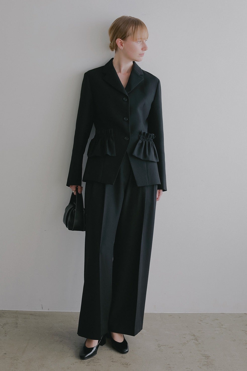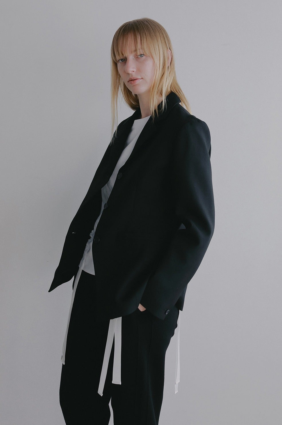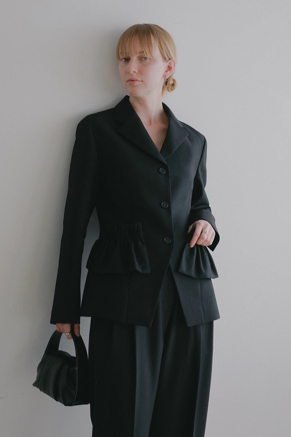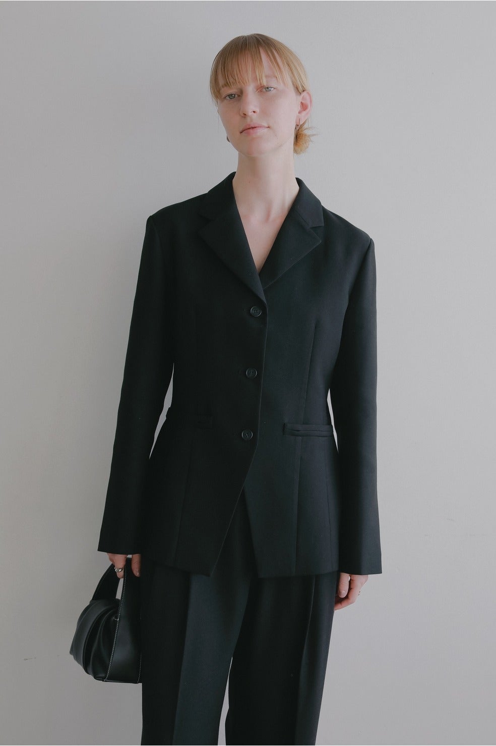 身体に沿うウエストシェイプされたシルエットがクラシカルなジャケット。