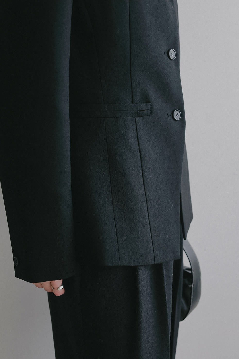 3つボタンを少し上めに設定したテーラードがより上品な印象。