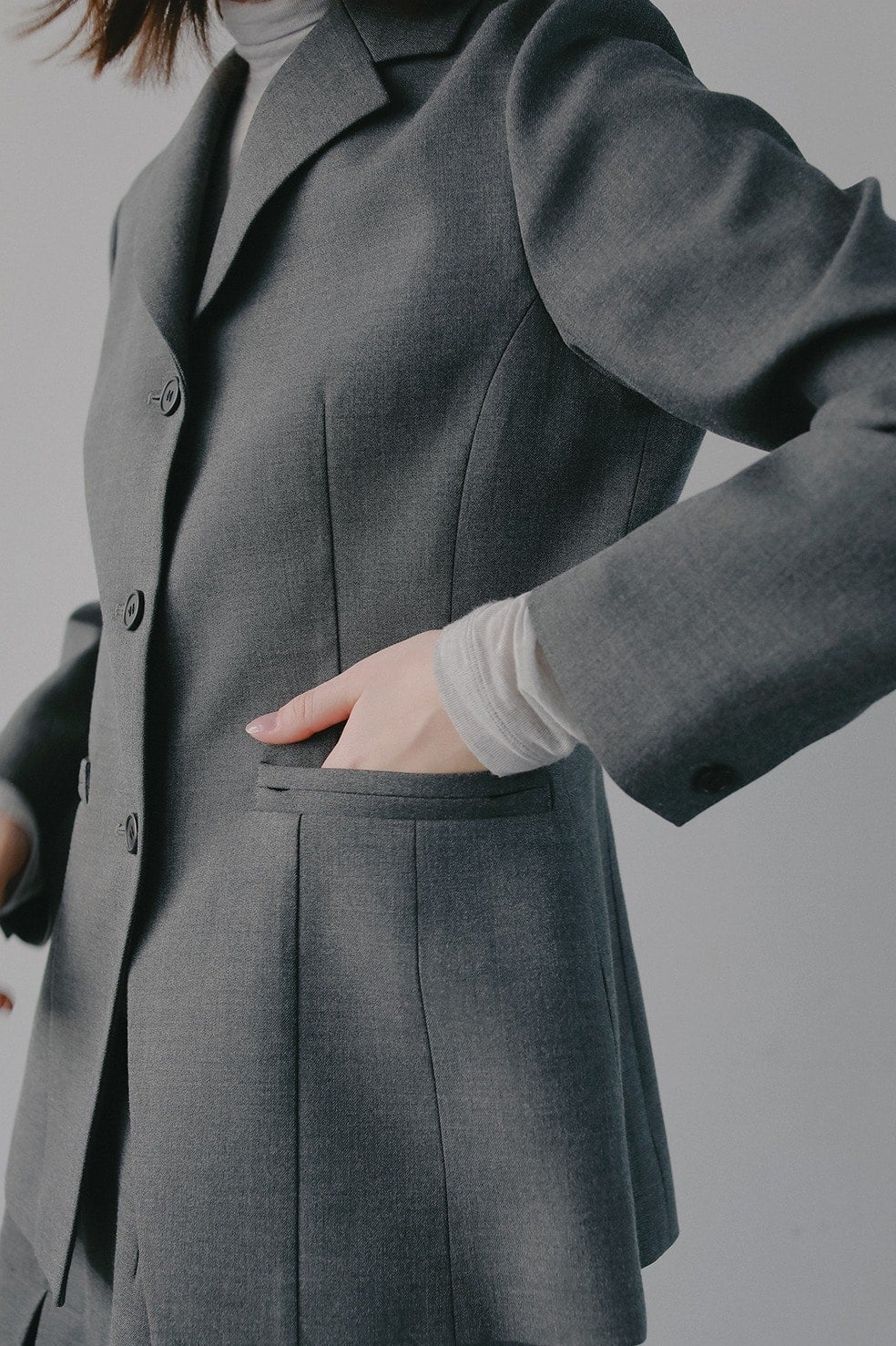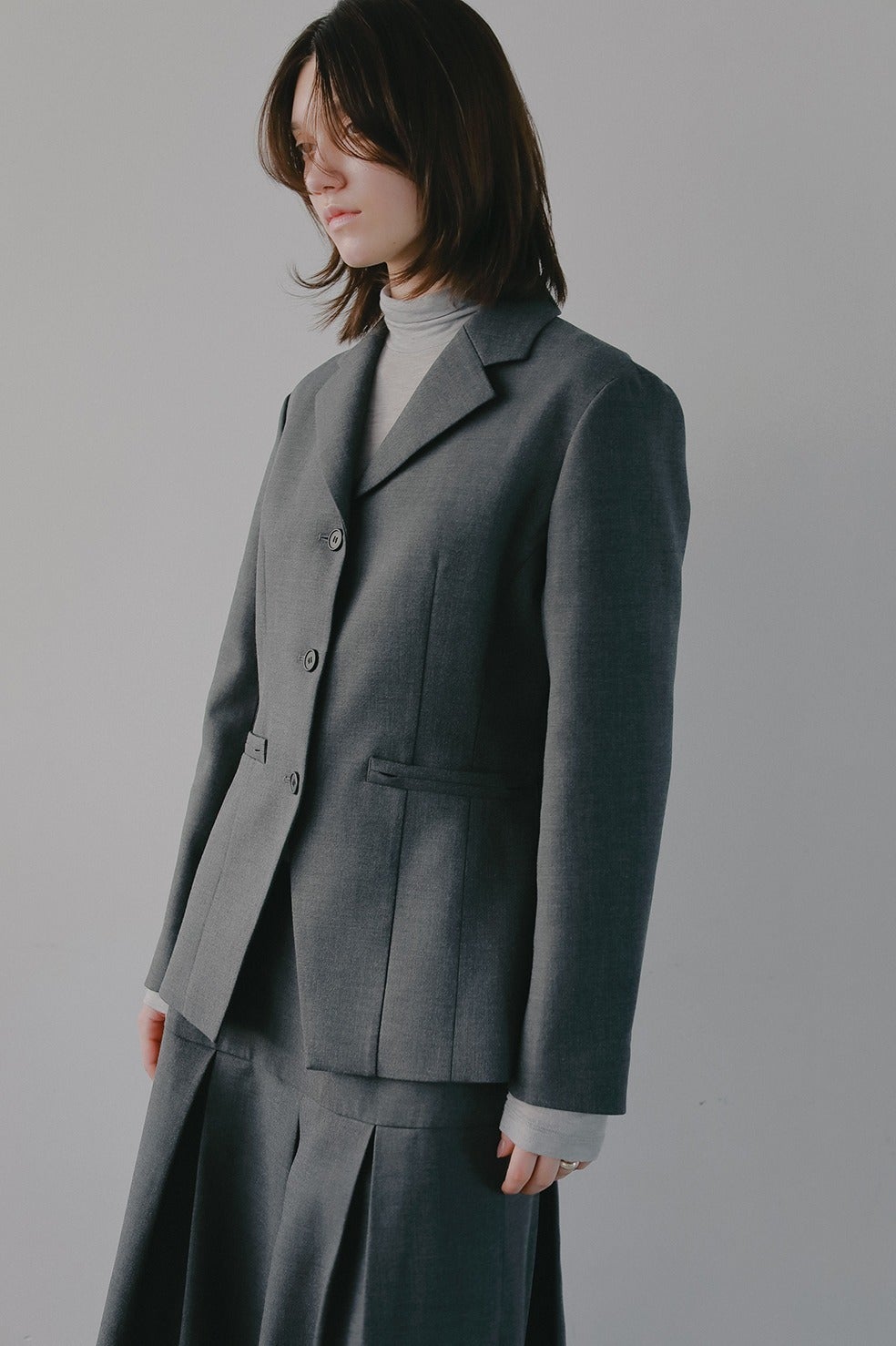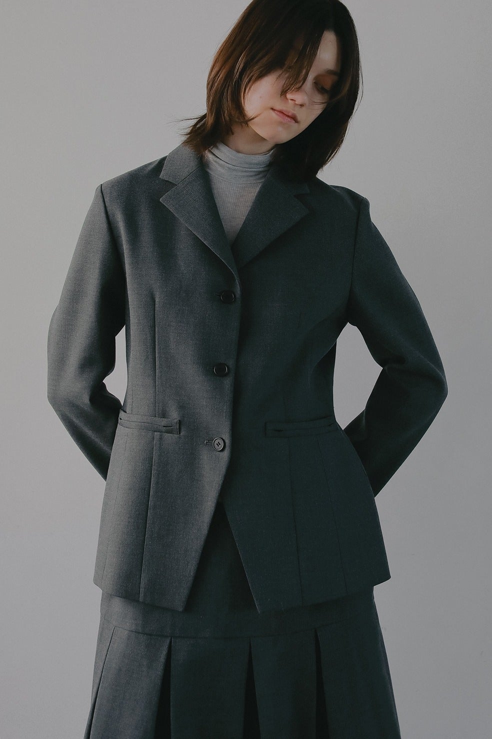 身体に沿うウエストシェイプされたシルエットがクラシカルなジャケット。