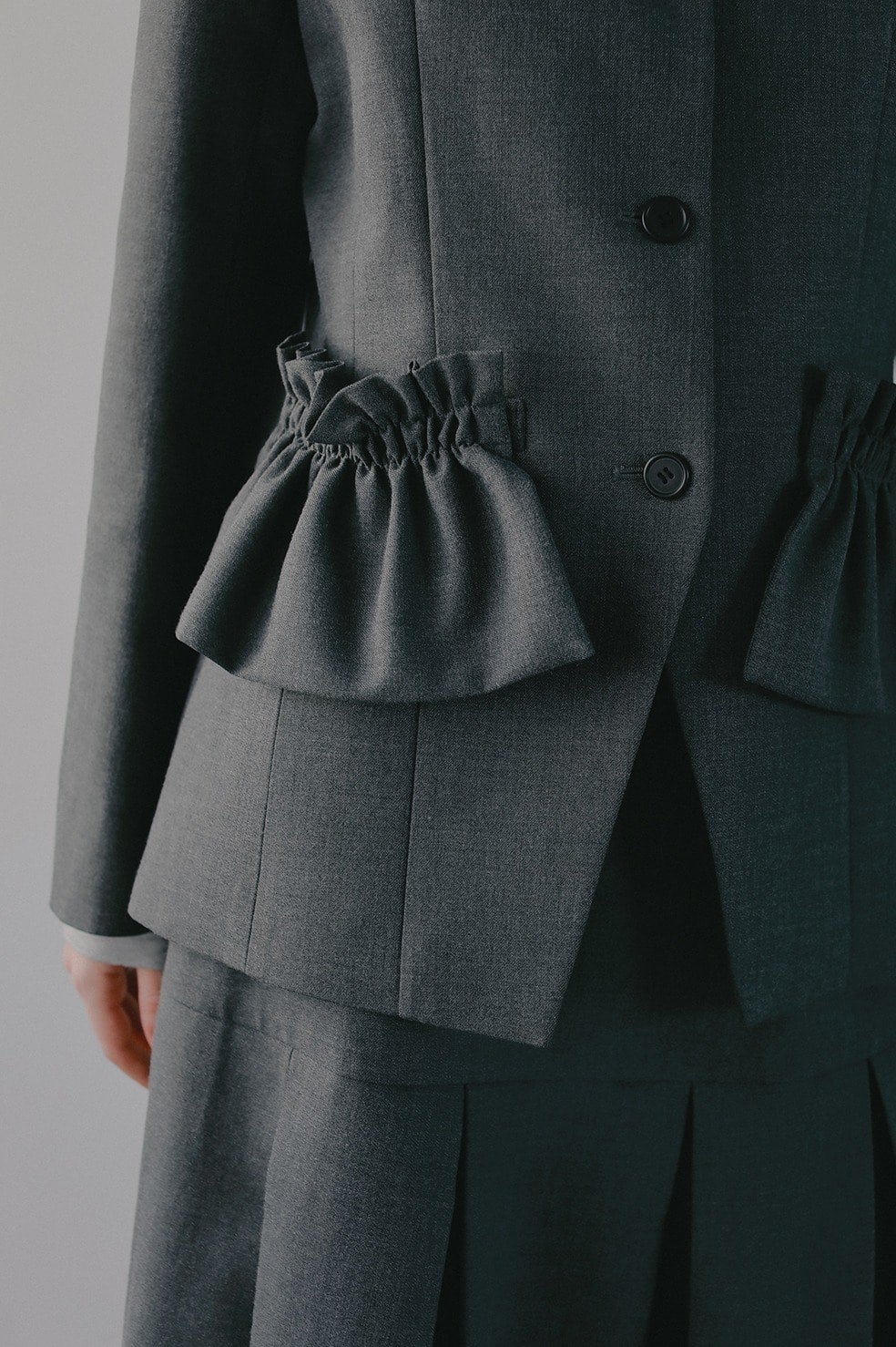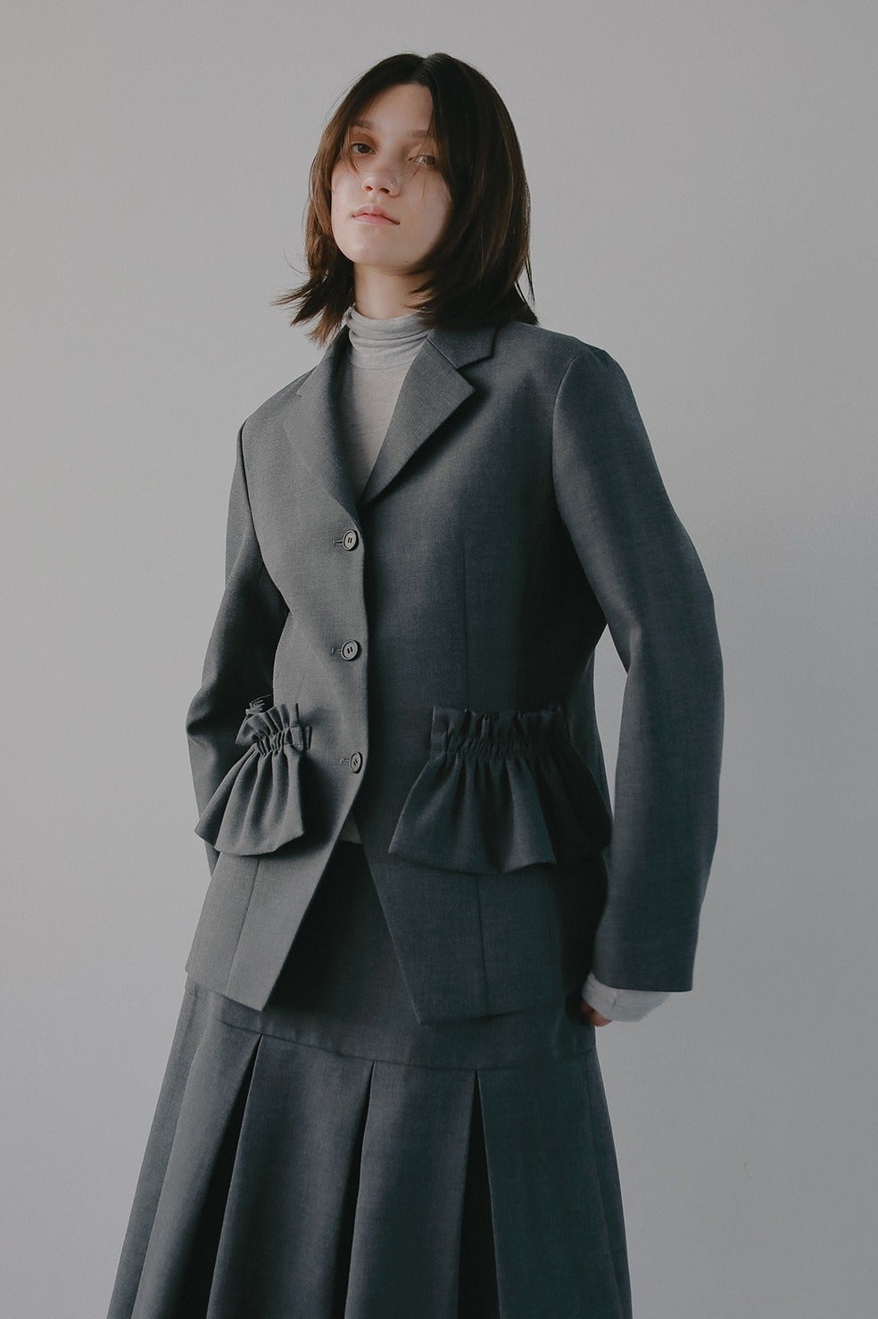 ポケットのフリルが特徴的なデザインです。フリルは取り外し可能なので、普段のお出かけからオケージョンシーンでも使いやすいアイテムです。
