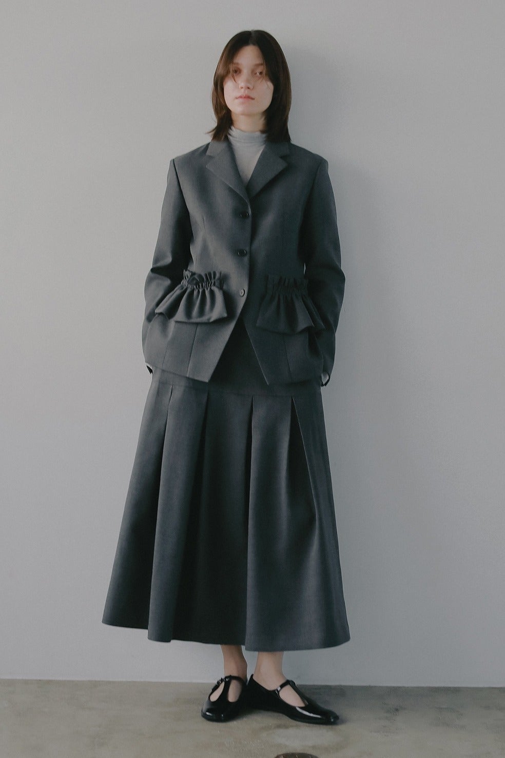 同素材のスカートとセットアップで着ていただくもおすすめです。