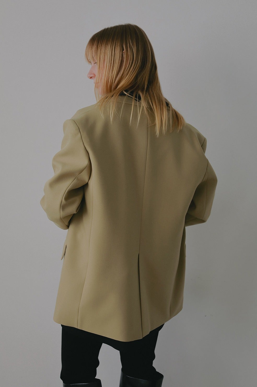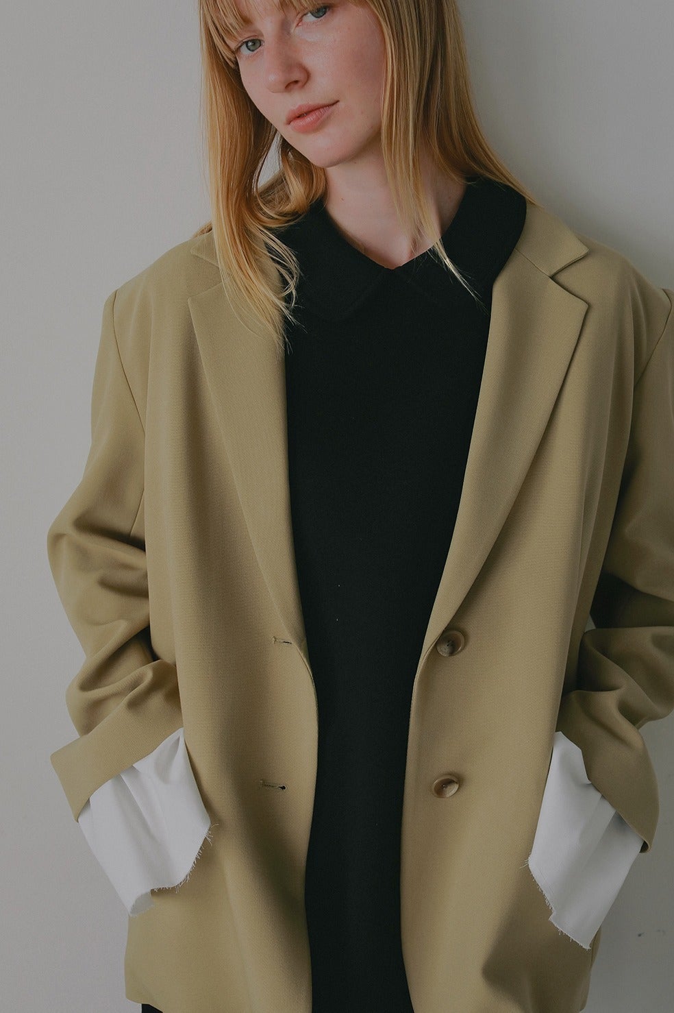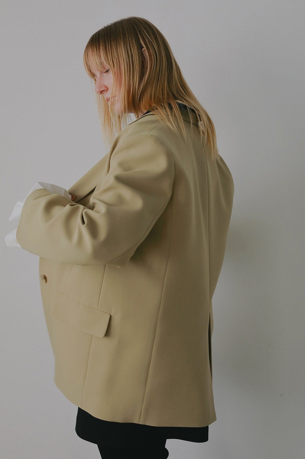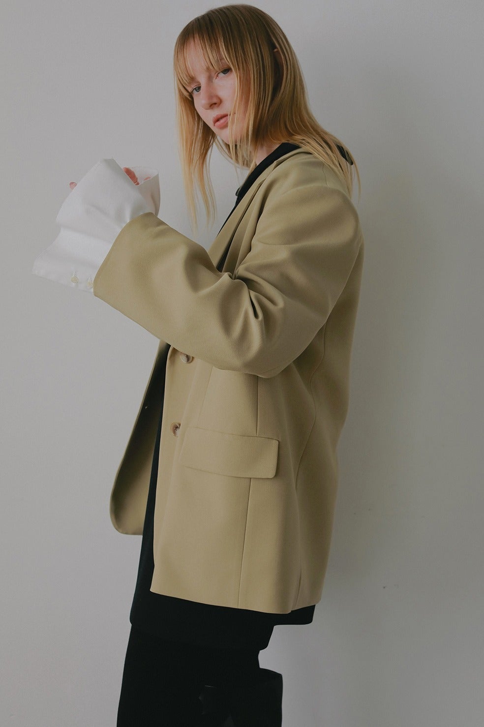 ハリのあるスパンタッチのマットなダブルクロス素材を使用し、きちんとした見え感ながらも肩を落とした抜け感のあるシルエットが魅力。