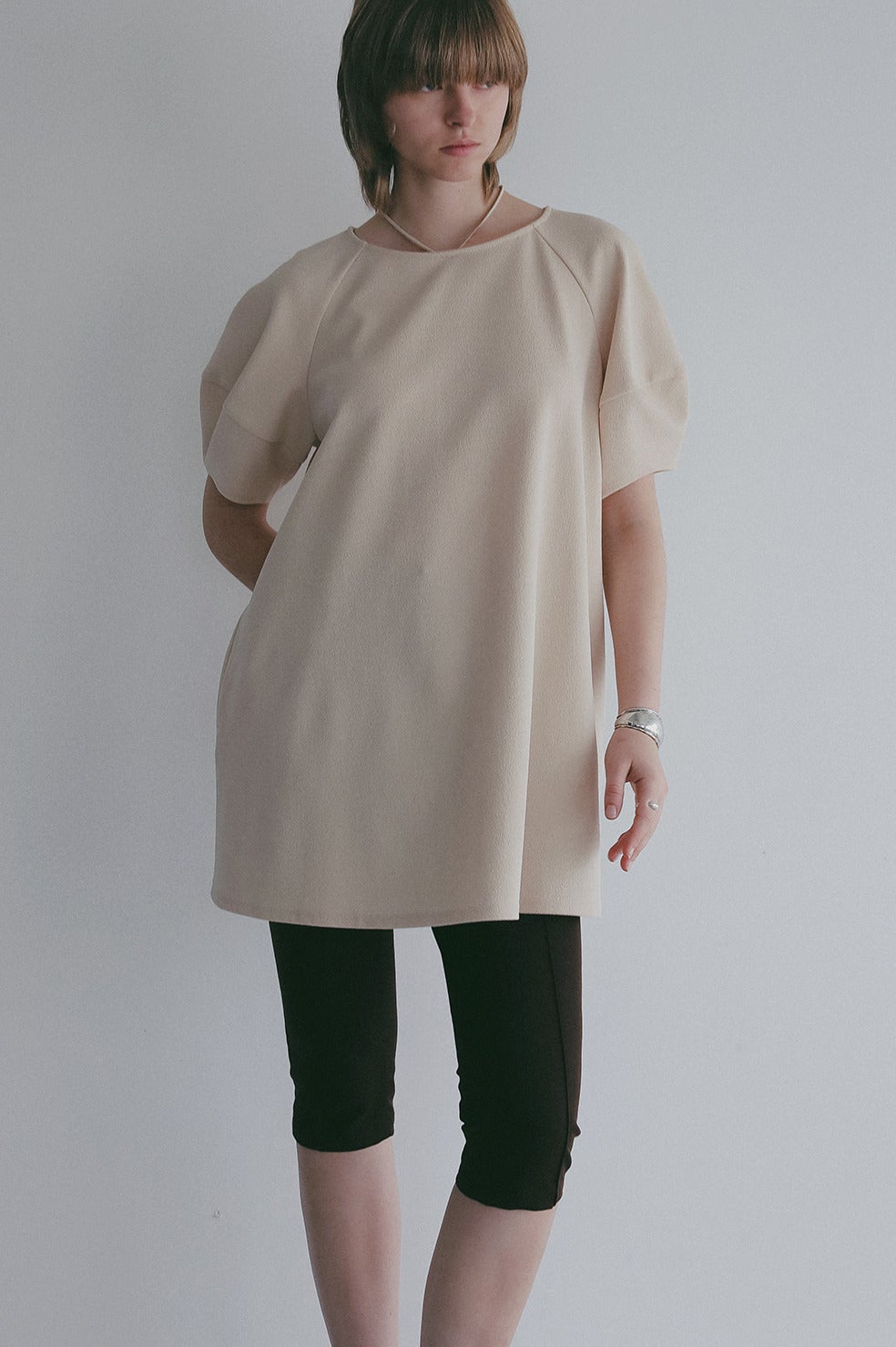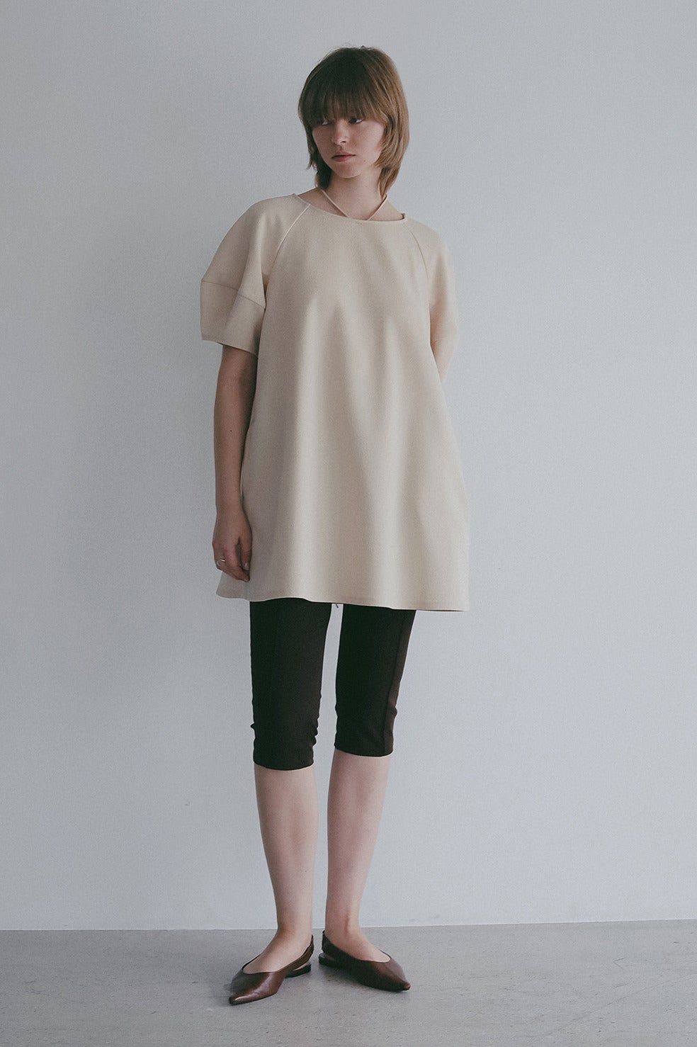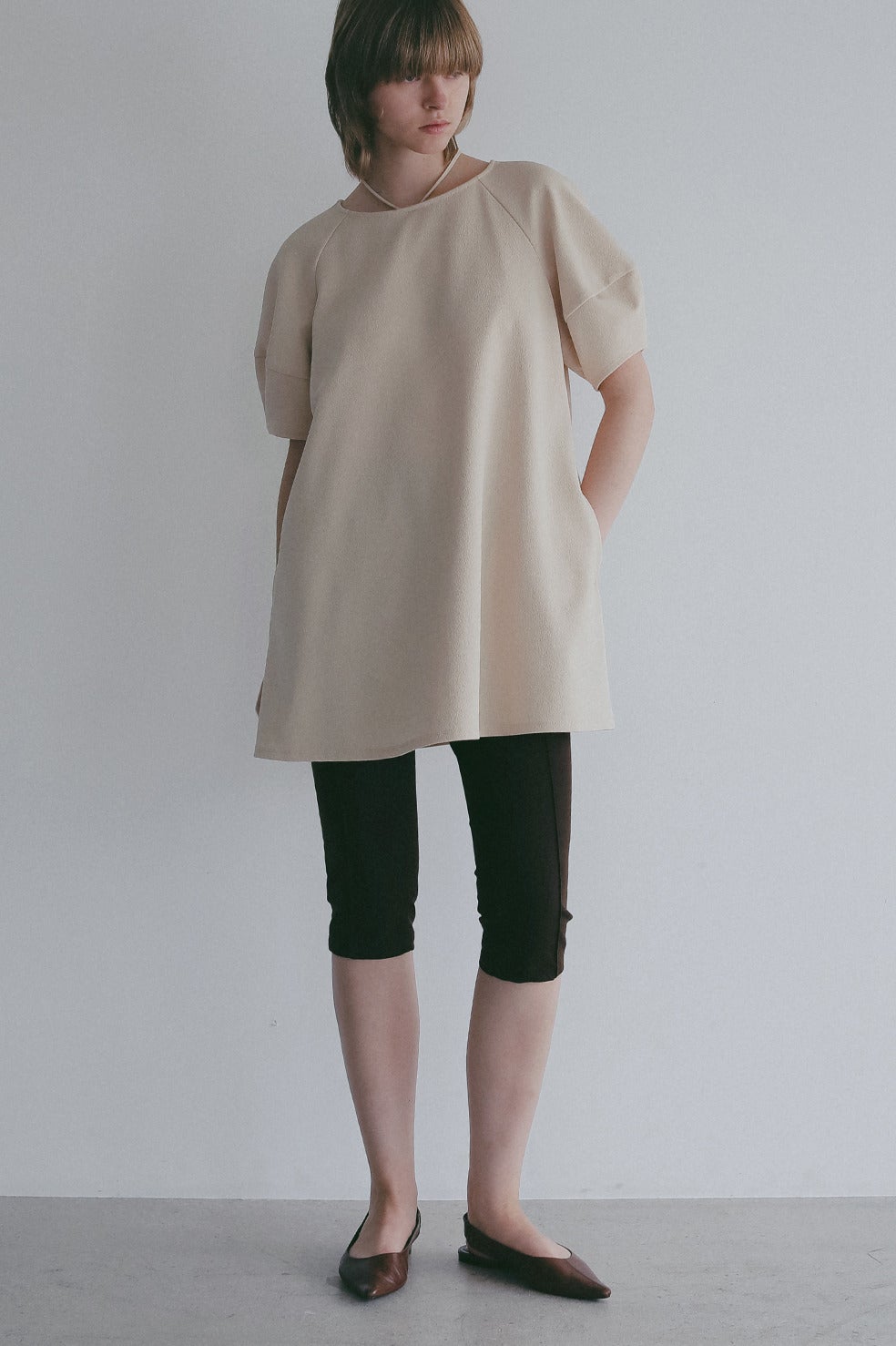 カプリパンツやレギンスを合わせてミニワンピのようなシルエットで着ていただいたり、ワイドパンツやフレアパンツ、ナロースカートでもバランス良い着こなしに。
