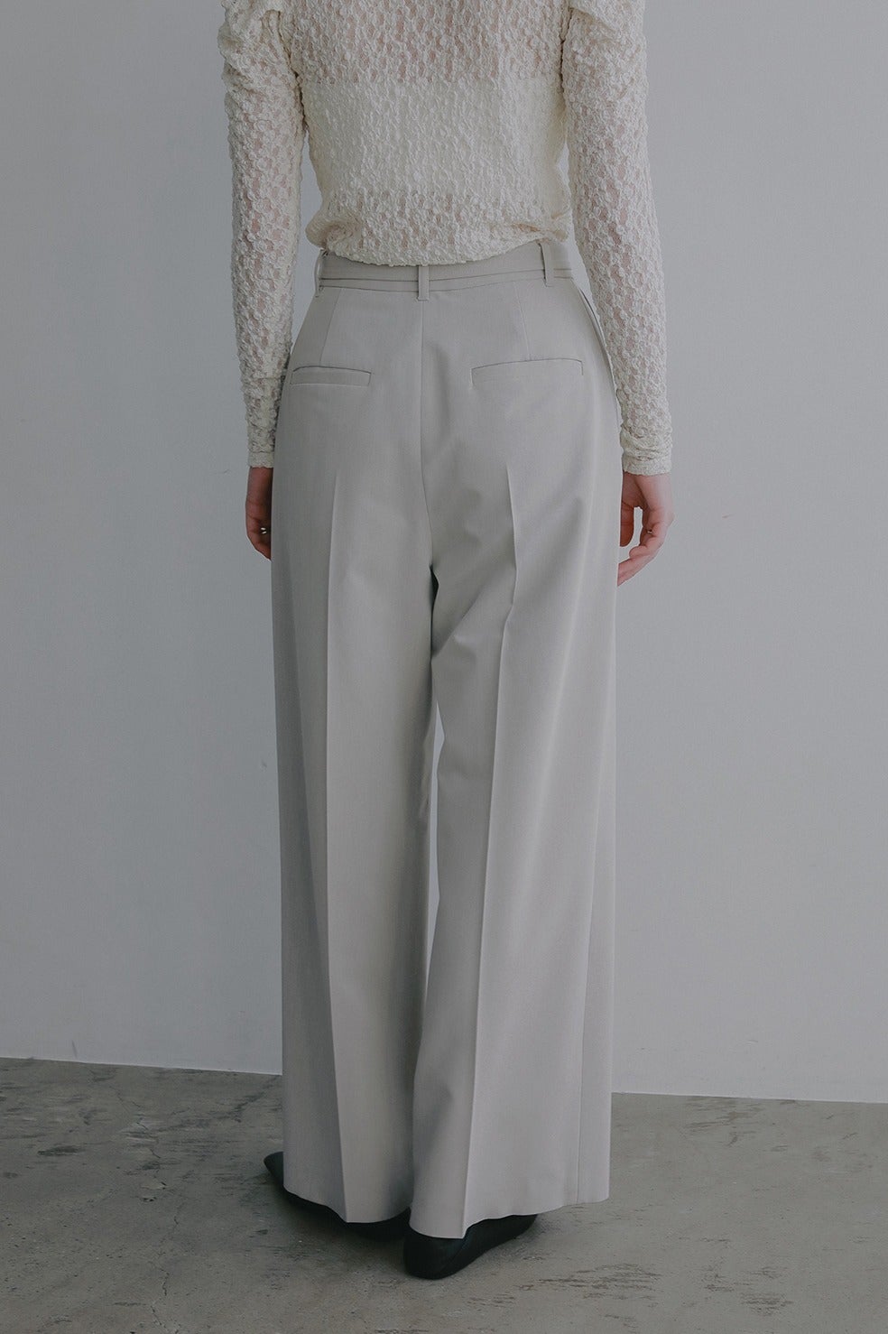 ヒップまわりにほど良いゆとりを持たせつつ、センタープレスを施すことで縦のラインを強調しスタイルアップを実現。