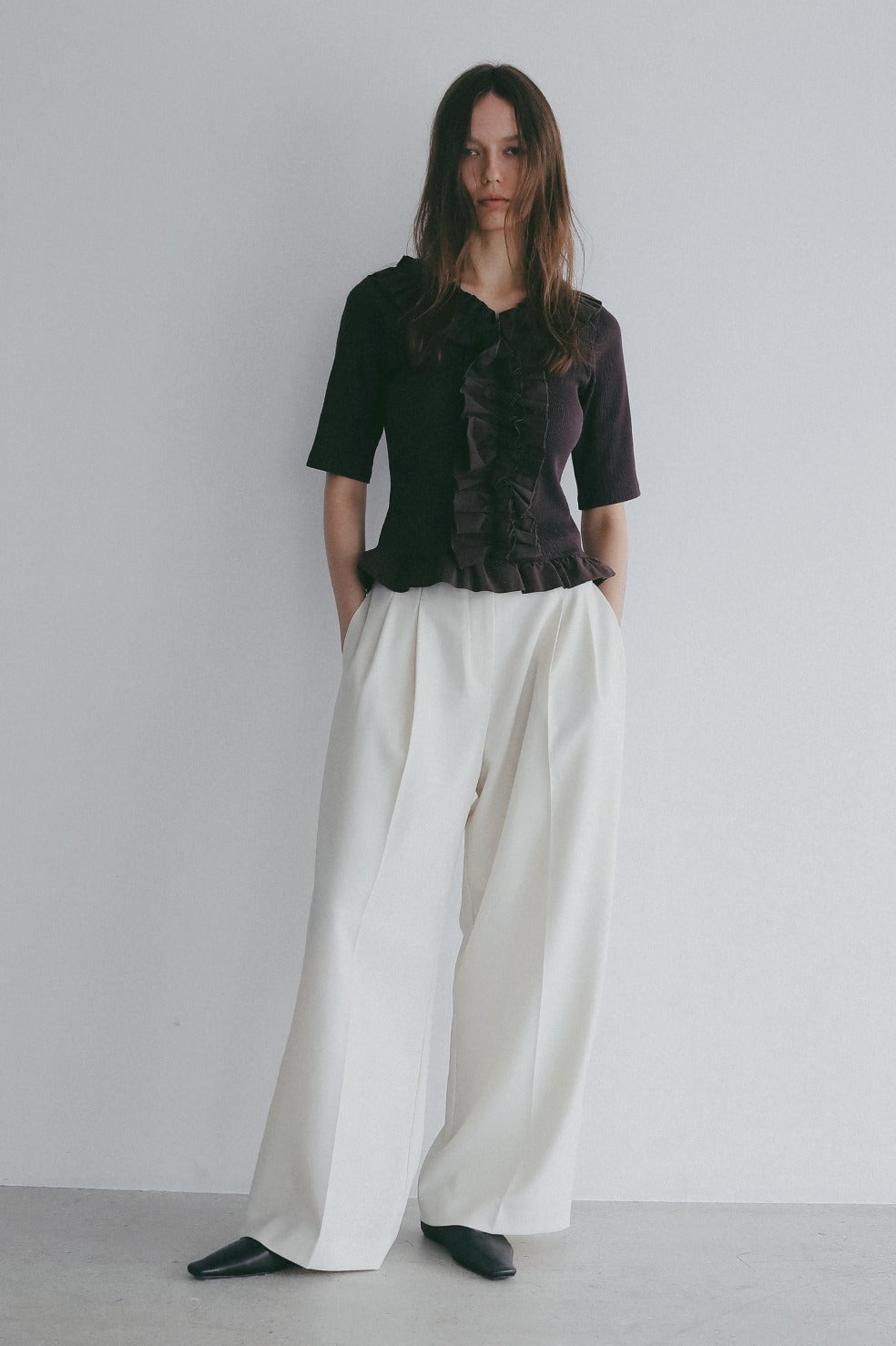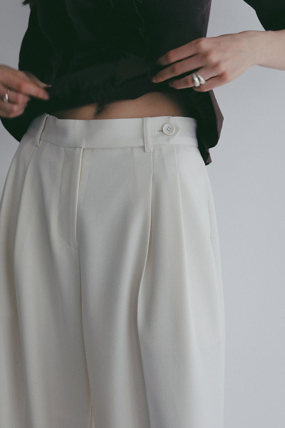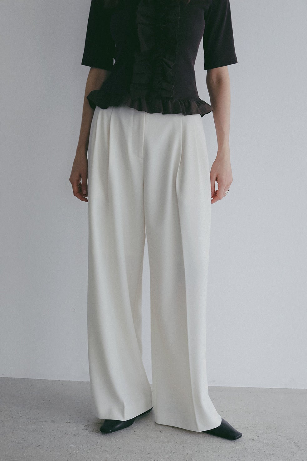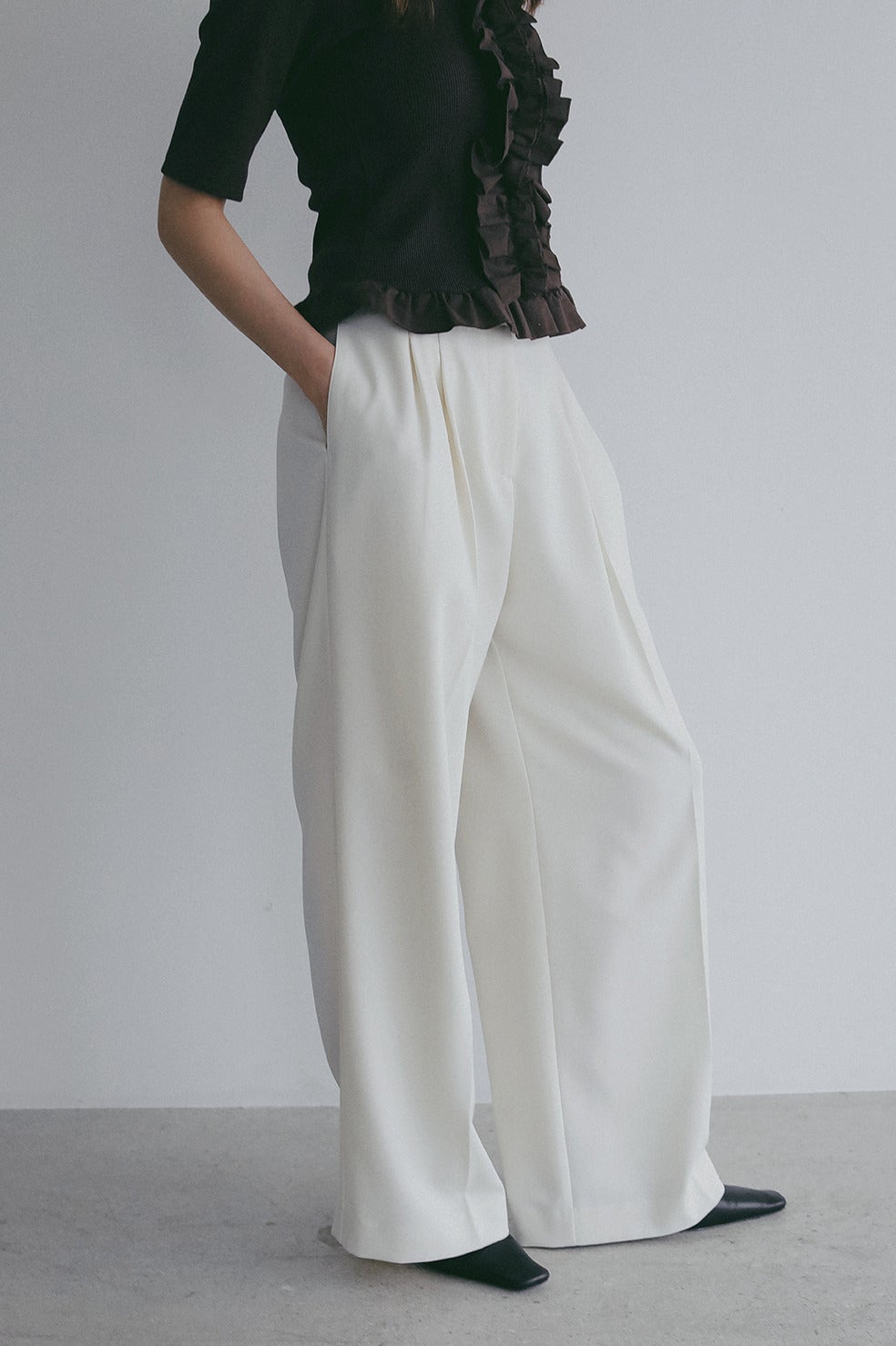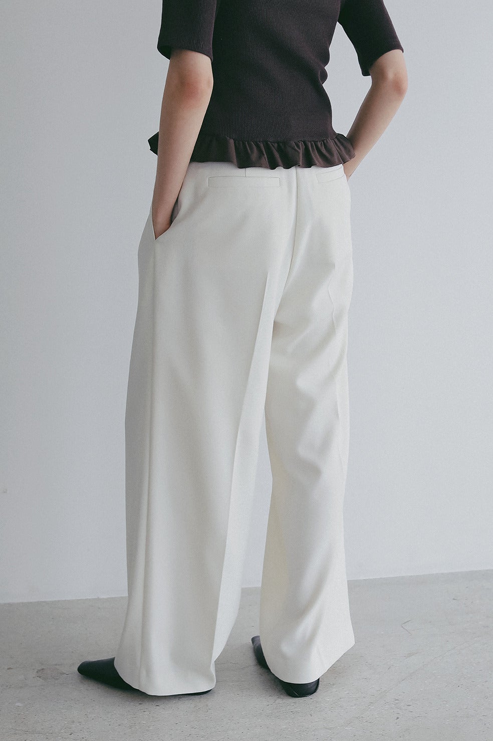 シルエットにこだわったローウエストの2タックワイドパンツ。