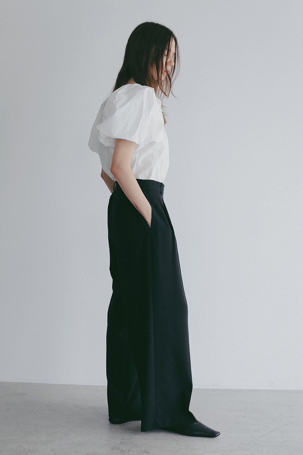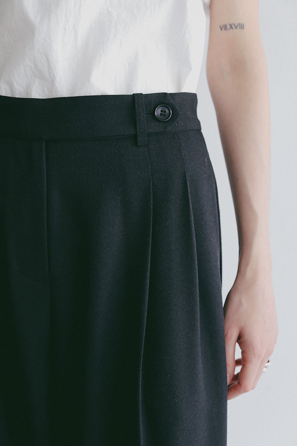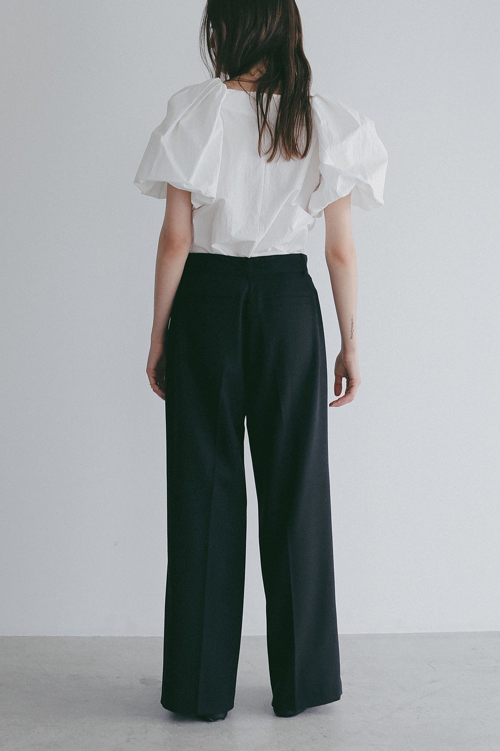 深めに入れた2つのタックが立体感を生み、縦のラインを美しく強調してくれます。