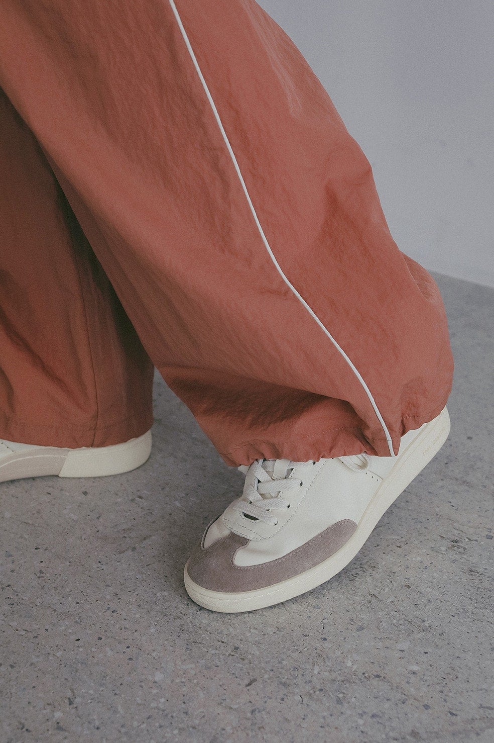 サイドの配色ラインがさりげなくアクセントとなり、モード感とスポーティさをほど良くミックス。