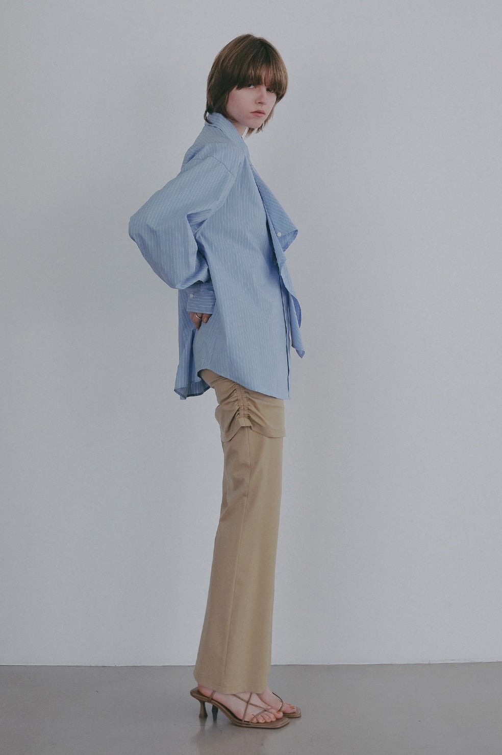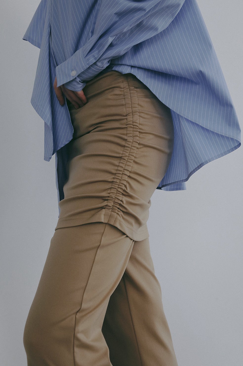 スカートはサイドにギャザーを入れ、タイトながらもヒップまわりをカバーしてくれるデザイン。
