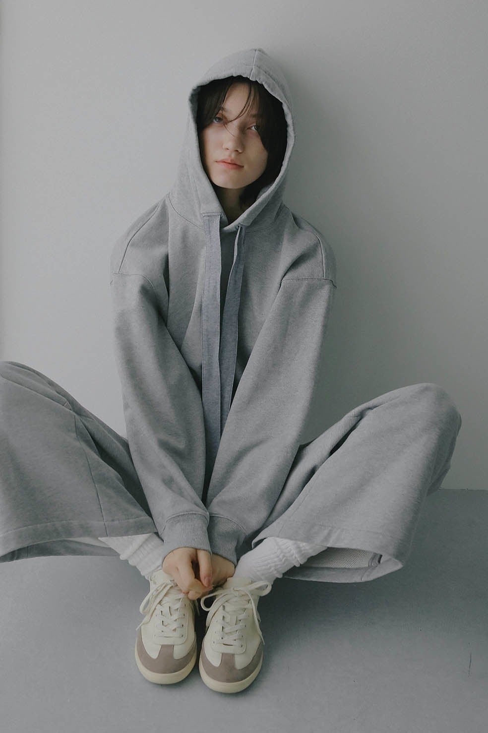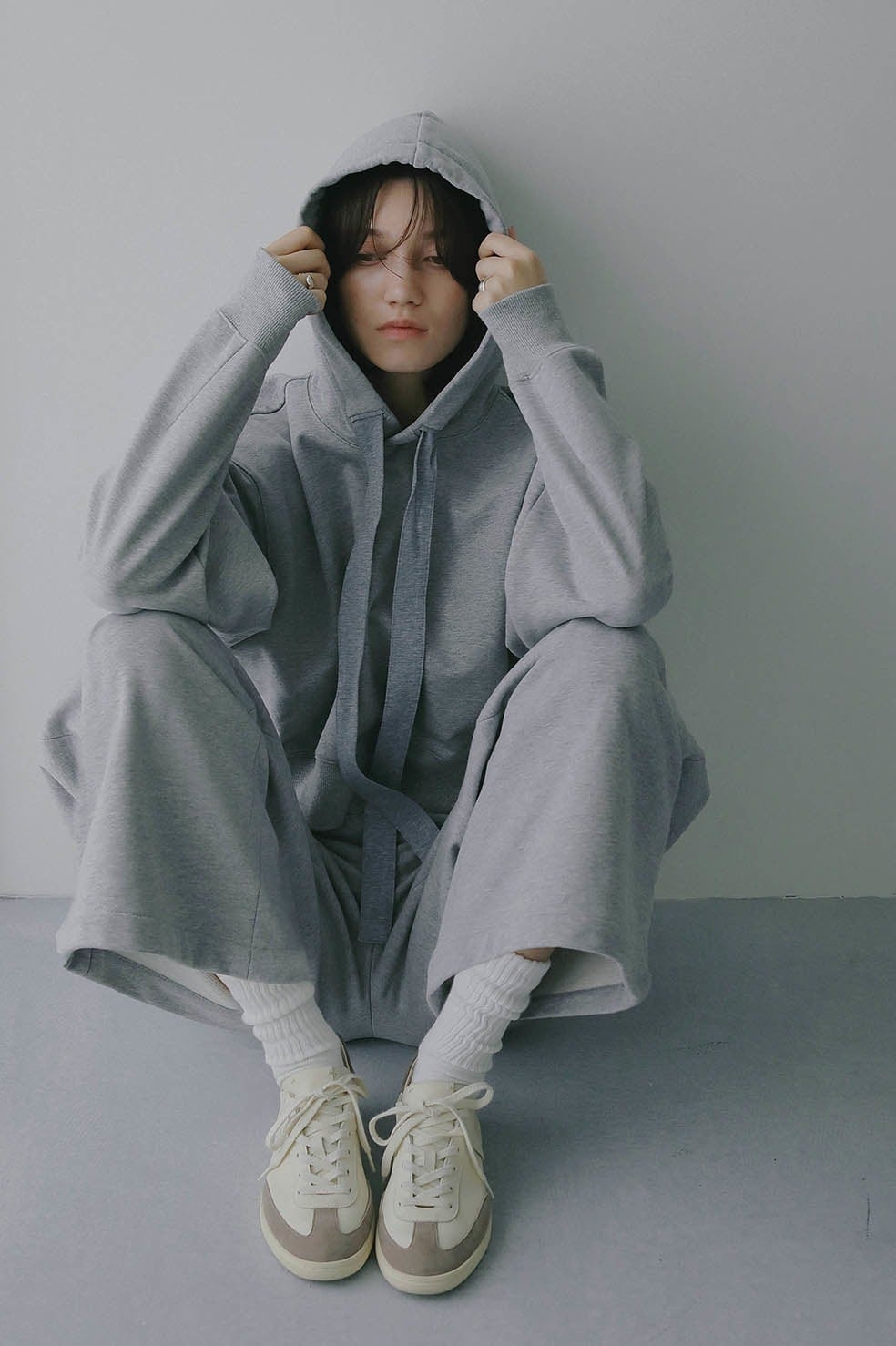 ハリがあり厚手のスウェット素材なので身体のラインを拾わないうえに、部屋着見えせずモードな印象で着ていただけます。