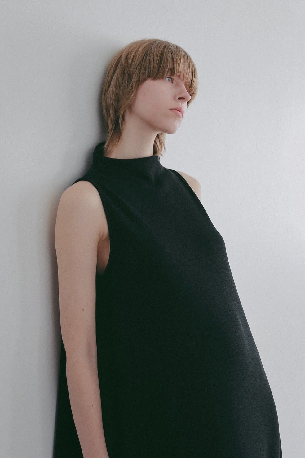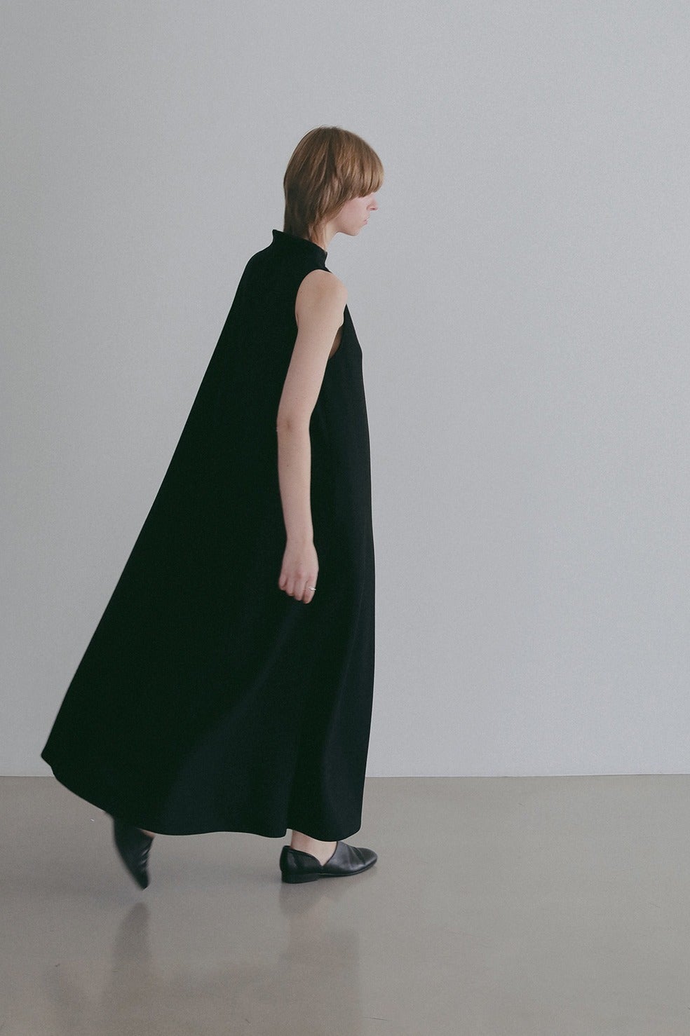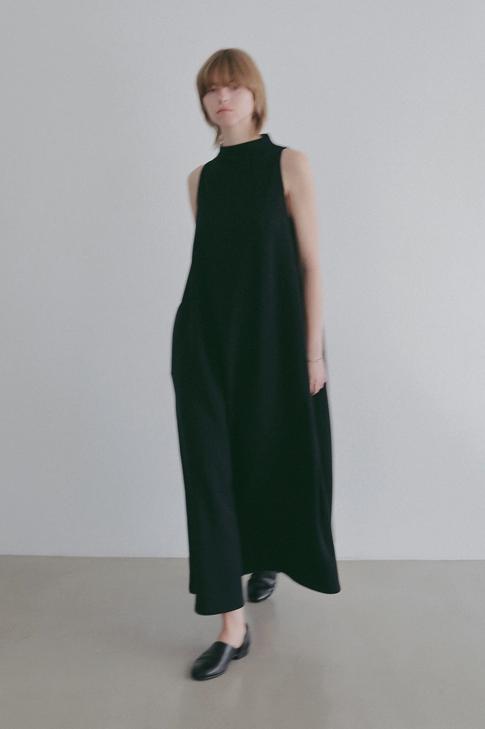 リネンのような表情を持つダブルフェイスジャージを使用し、ブークレのような表面感で一枚で映えるワンピースに仕上げました。