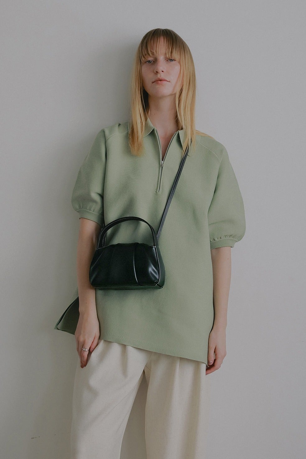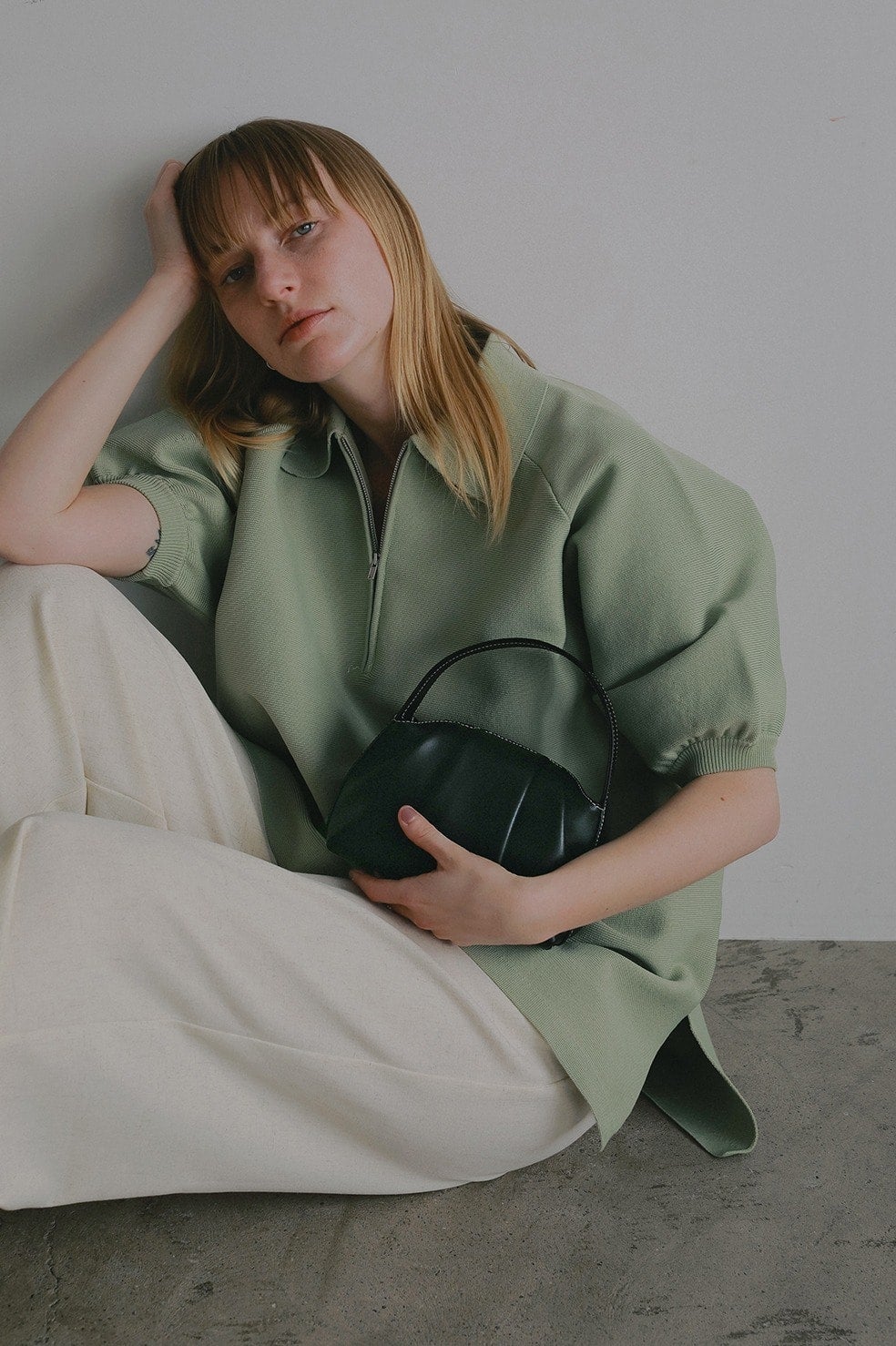 ボリューム感を生かした革のシャーリングと完成度の高い仕上げで構造的でエレガントなシルエットが特徴です。
