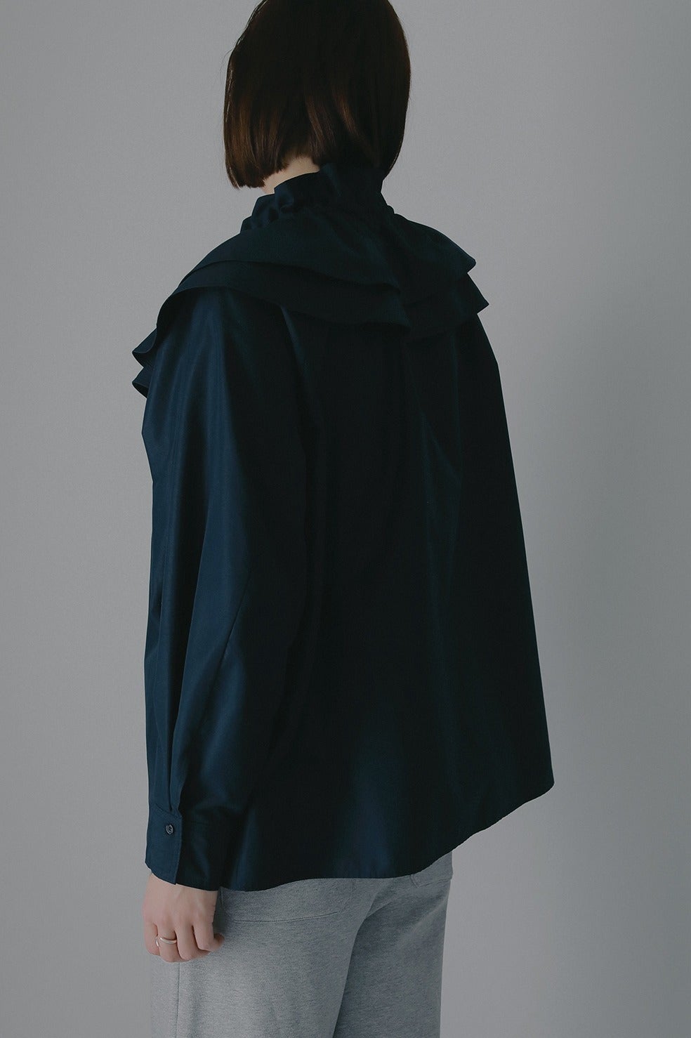 アウターやニットに襟だけ出した着こなしなどレイヤード使いも楽しめます。