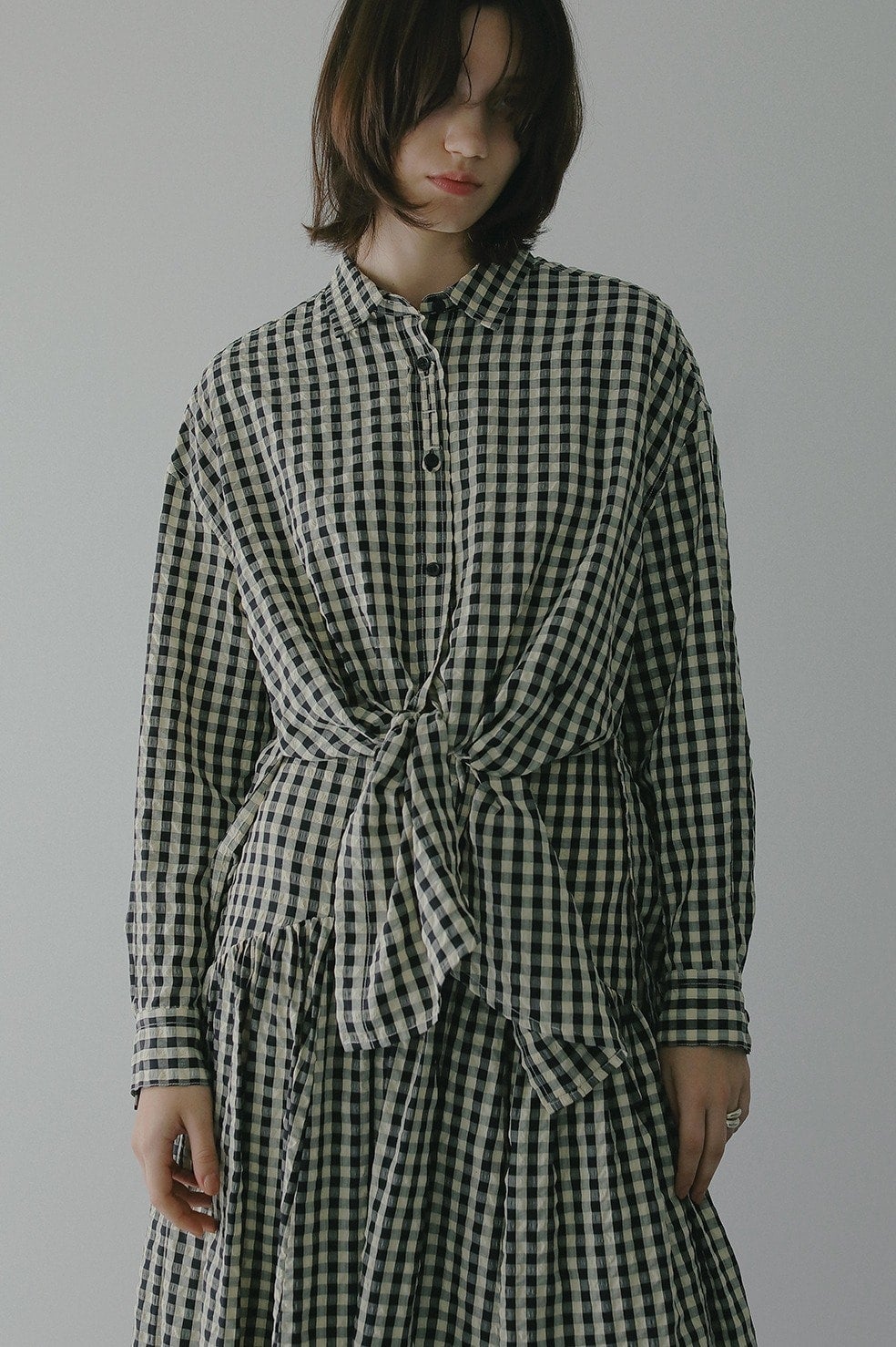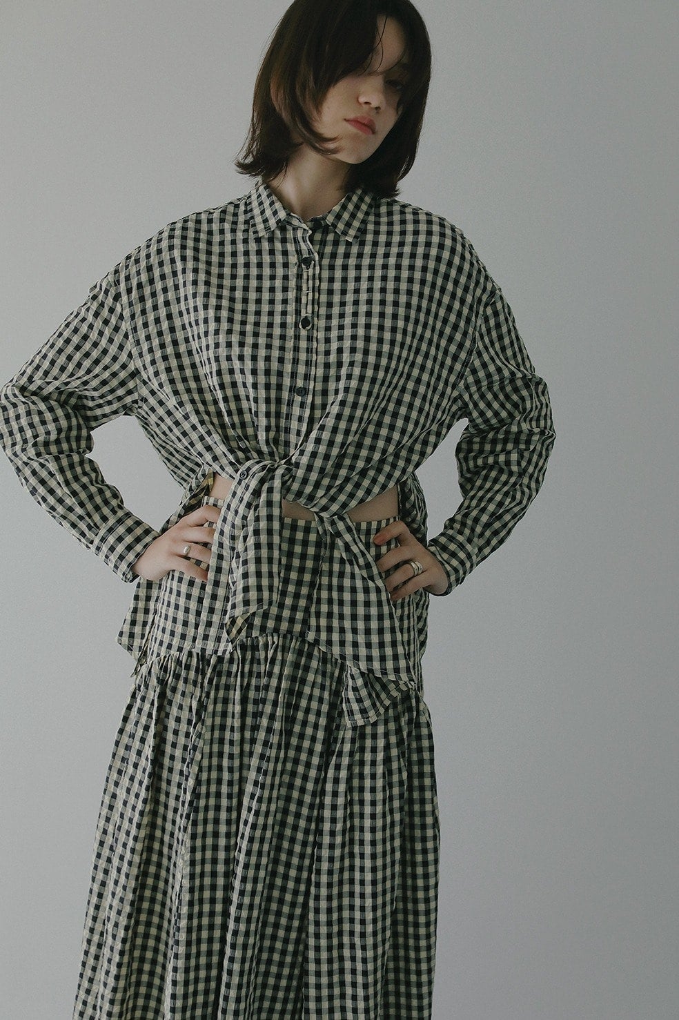 さまざまなアレンジを楽しめるギンガムチェック柄のオーバーサイズシャツ。