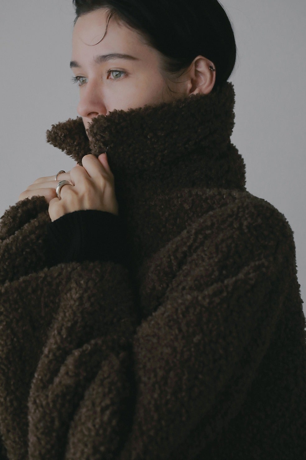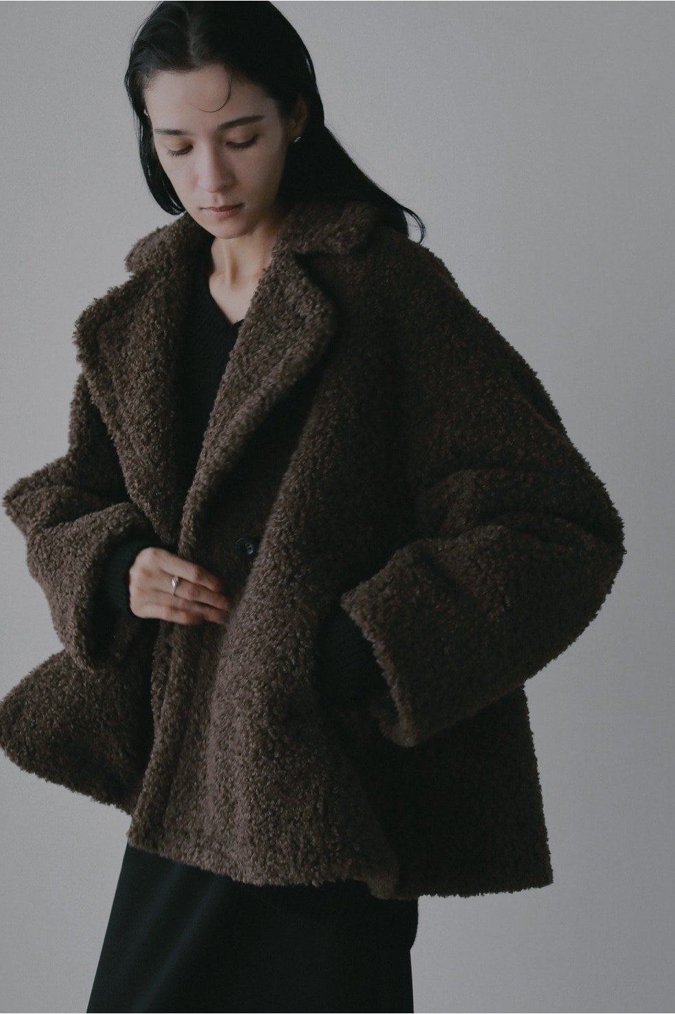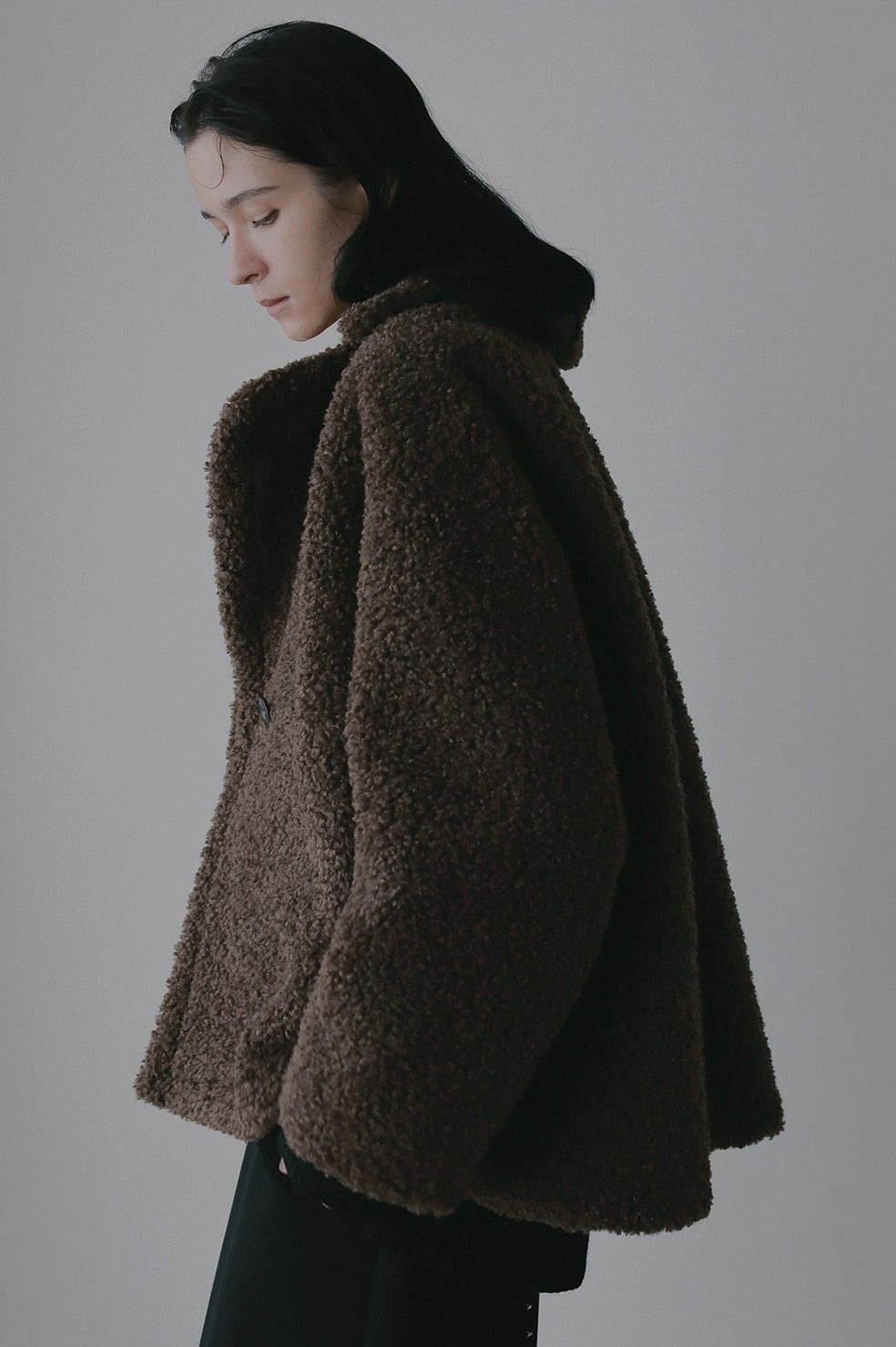 少しカールがかった毛足が上品な印象のボアジャケット。