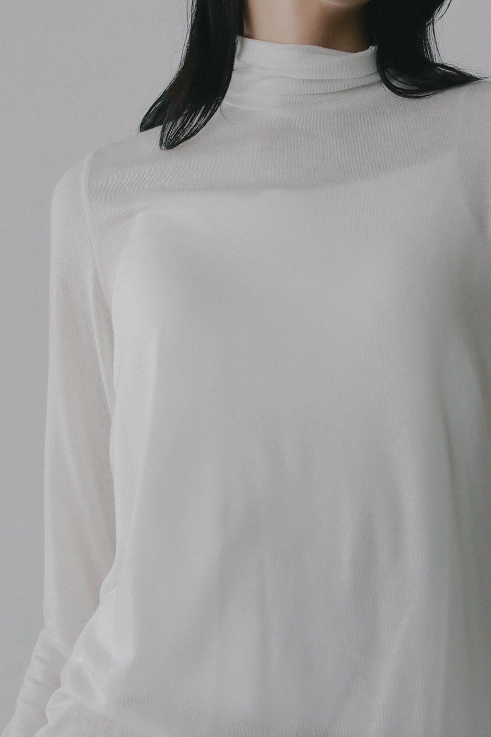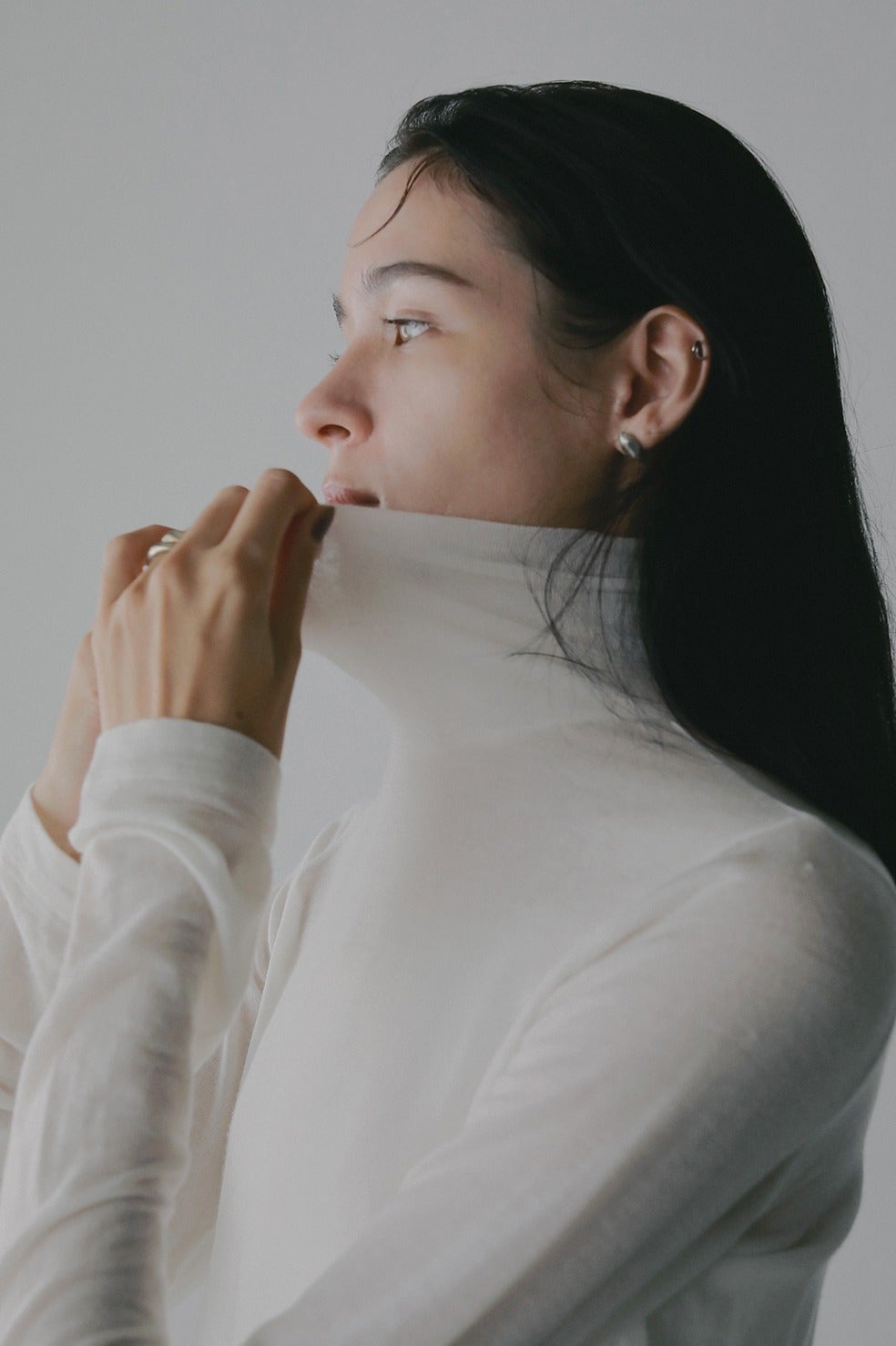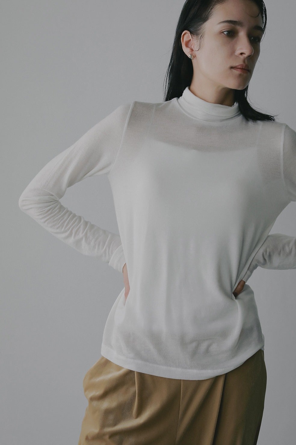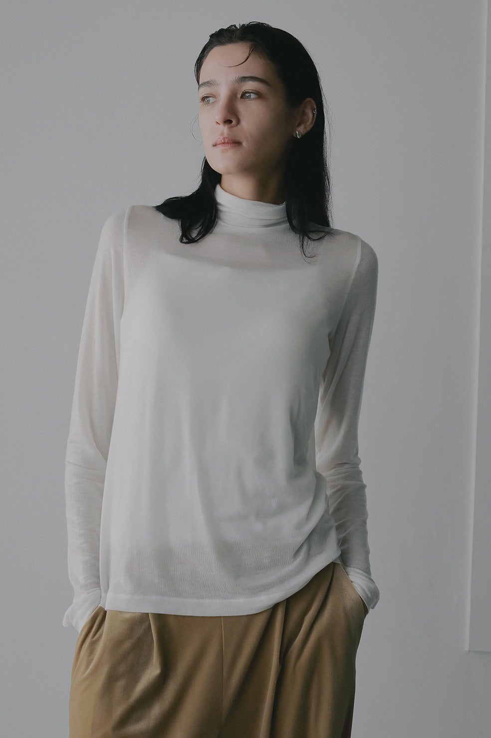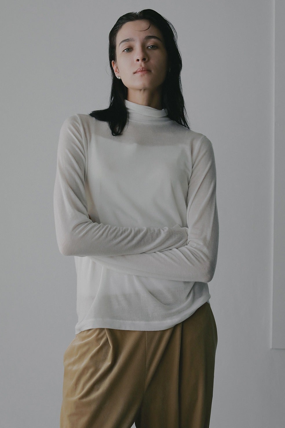 カシミヤとシルクを贅沢にブレンドした、極上の肌触りの上質な素材感のハイネックカットソー。