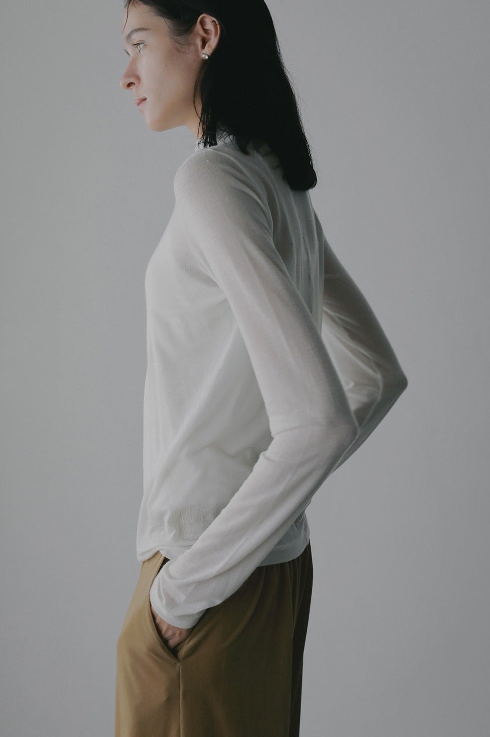 ほんのりと肌を透かす絶妙なシアー感とぴったりとしすぎないサイズ感が、抜け感ある着こなしに仕上げてくれます。