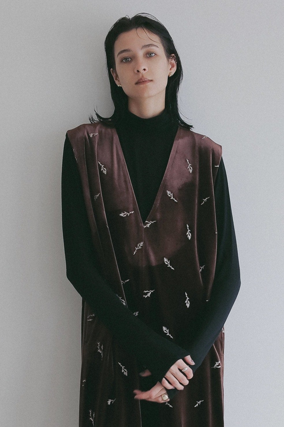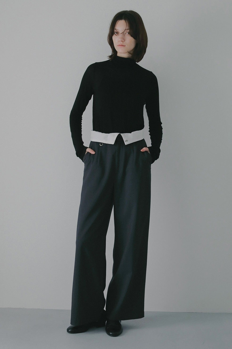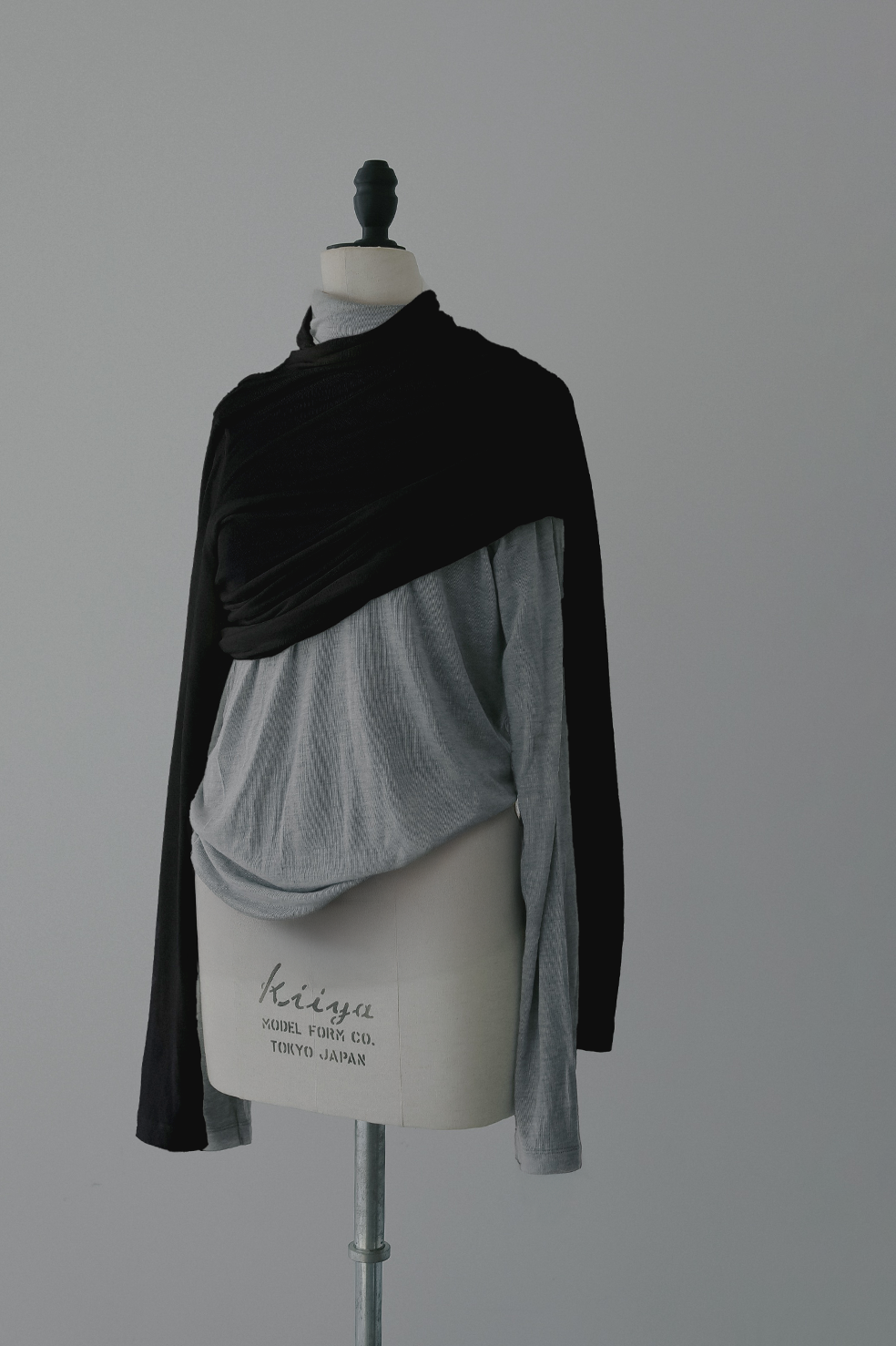 ハイネックデザインで首元も少しゆとりがあるのでドレープのようにラフに溜まります。