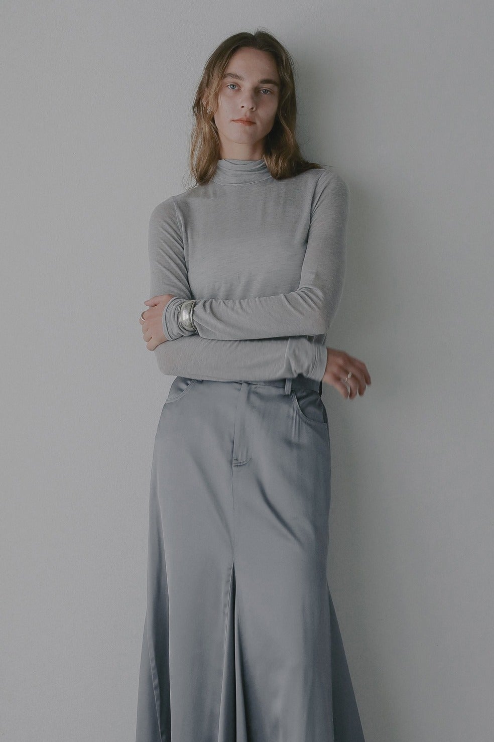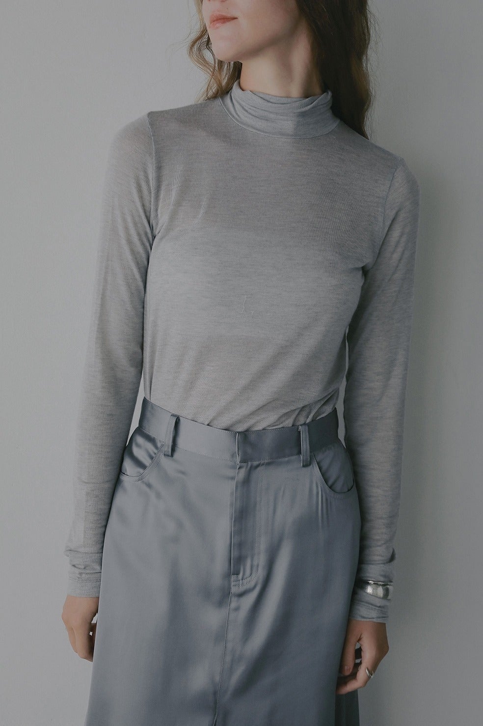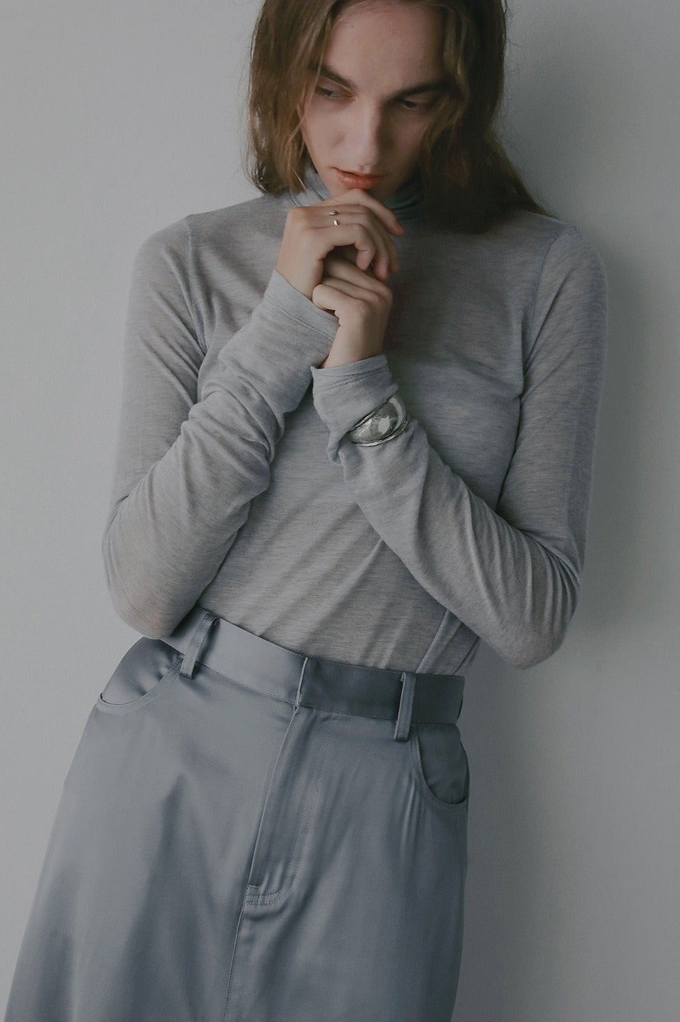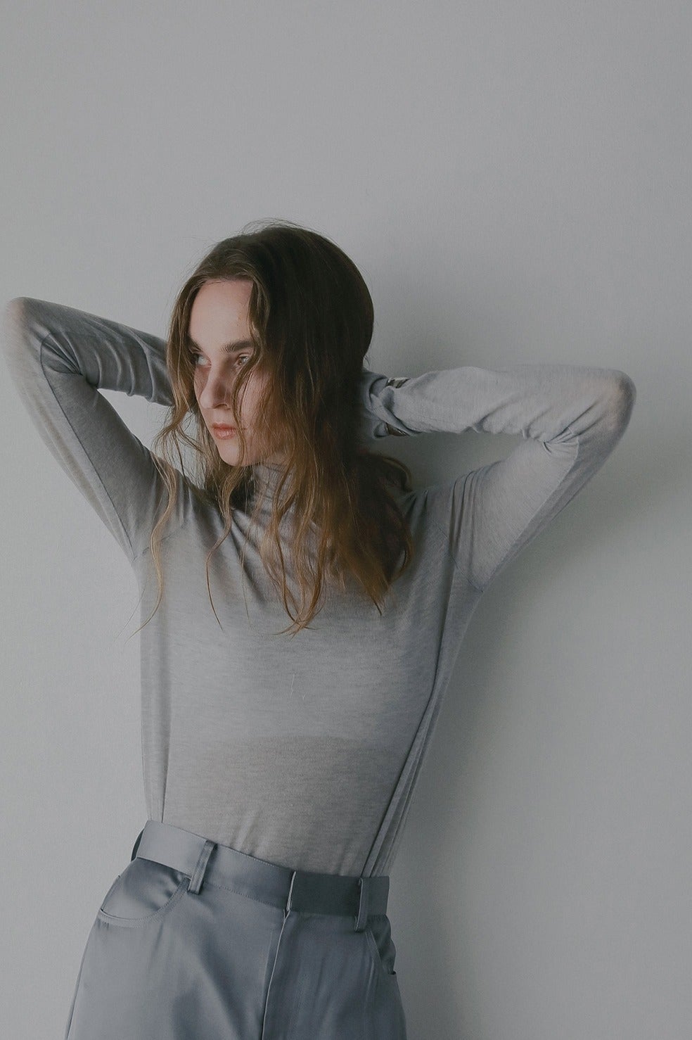 カシミヤとシルクを贅沢にブレンドした、極上の肌触りの上質な素材感のハイネックカットソー。