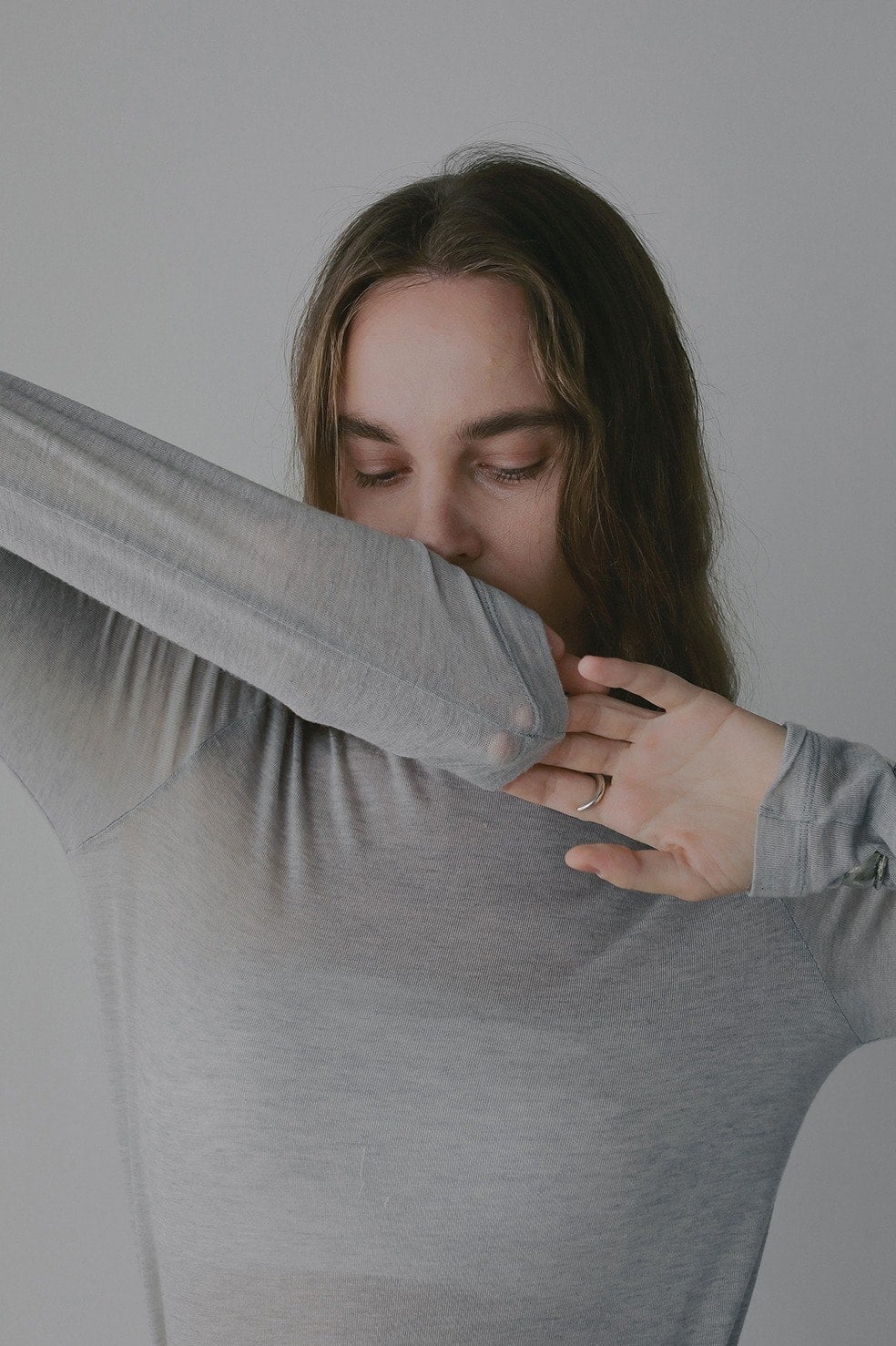ほんのりと肌を透かす絶妙なシアー感とぴったりとしすぎないサイズ感が、抜け感ある着こなしに仕上げてくれます。