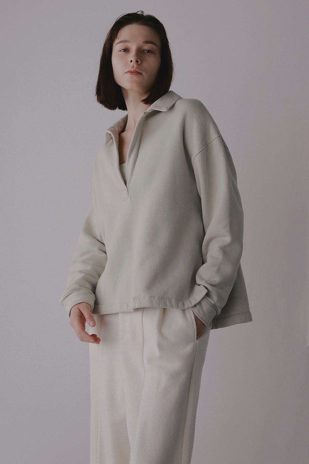 フロントのスリットを深めに設定し、ボックスシルエットのモード感あるニュアンスに仕上げました。