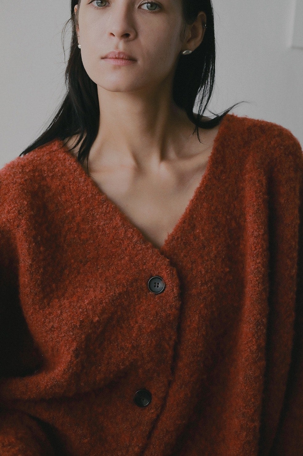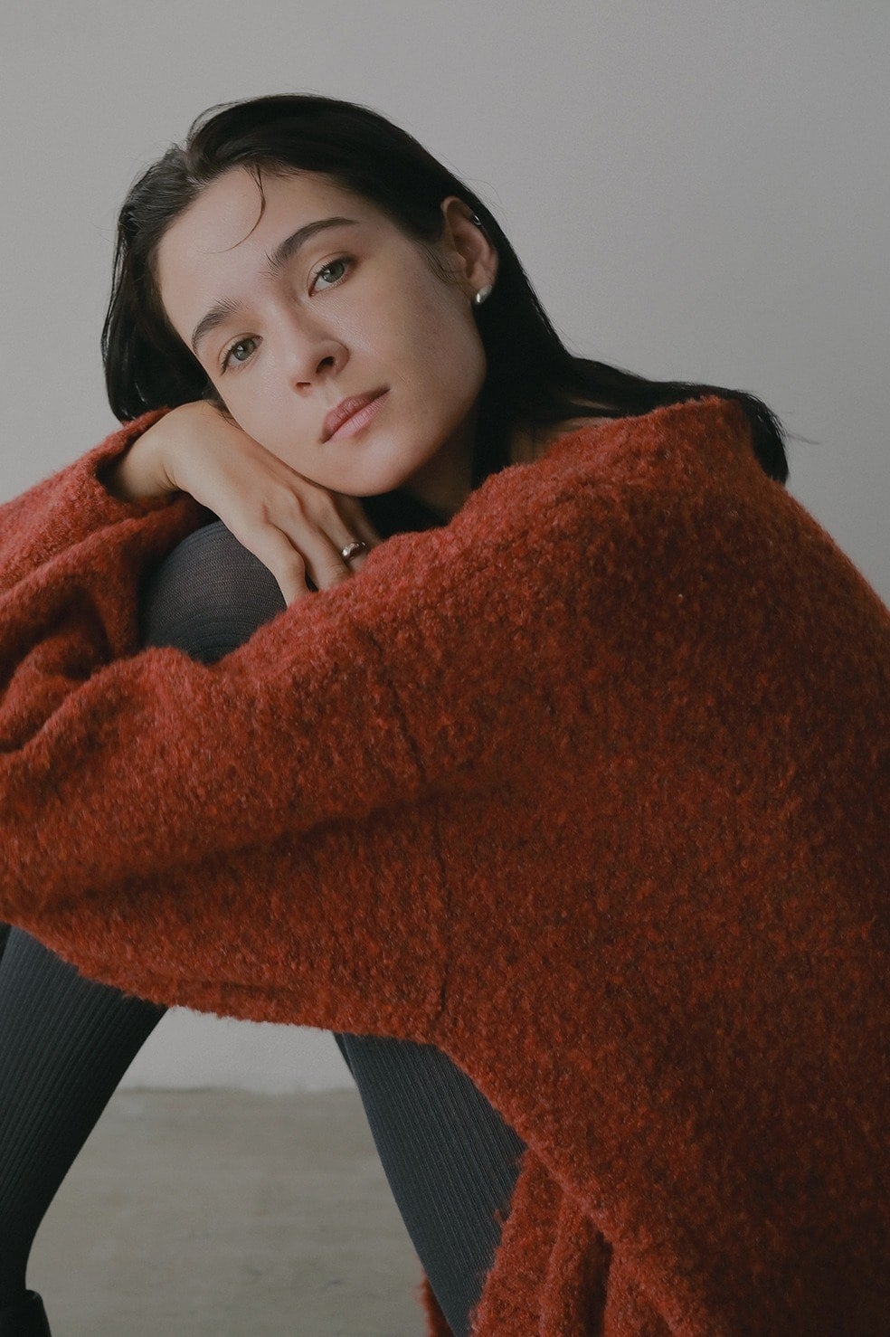 ふんわりとした質感と奥ゆきのあるカラーが印象的なブークレカーディガン。
