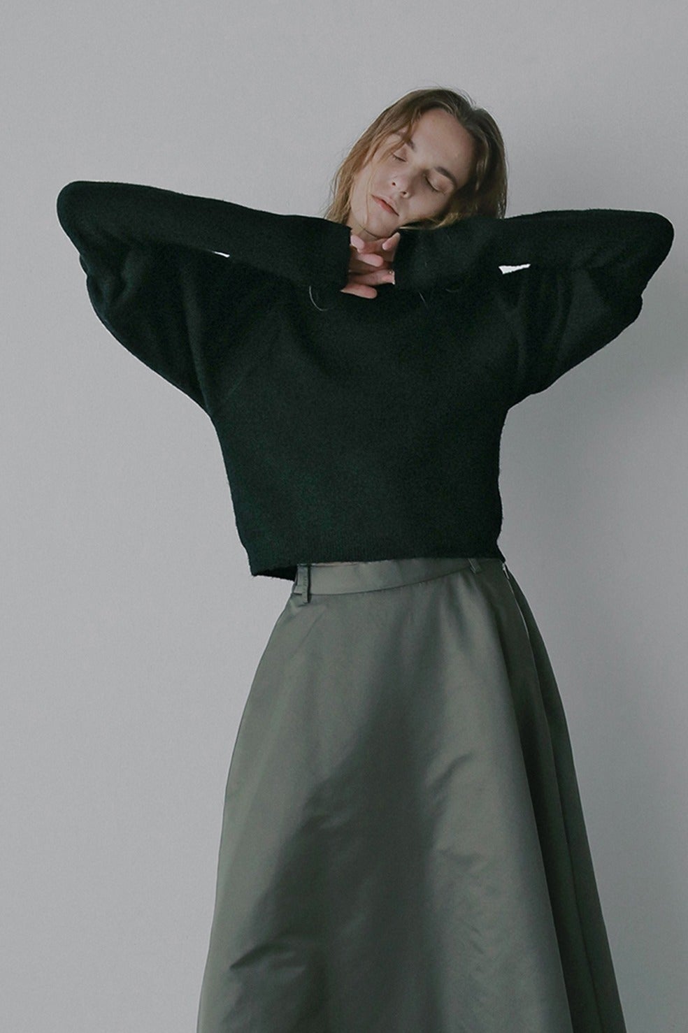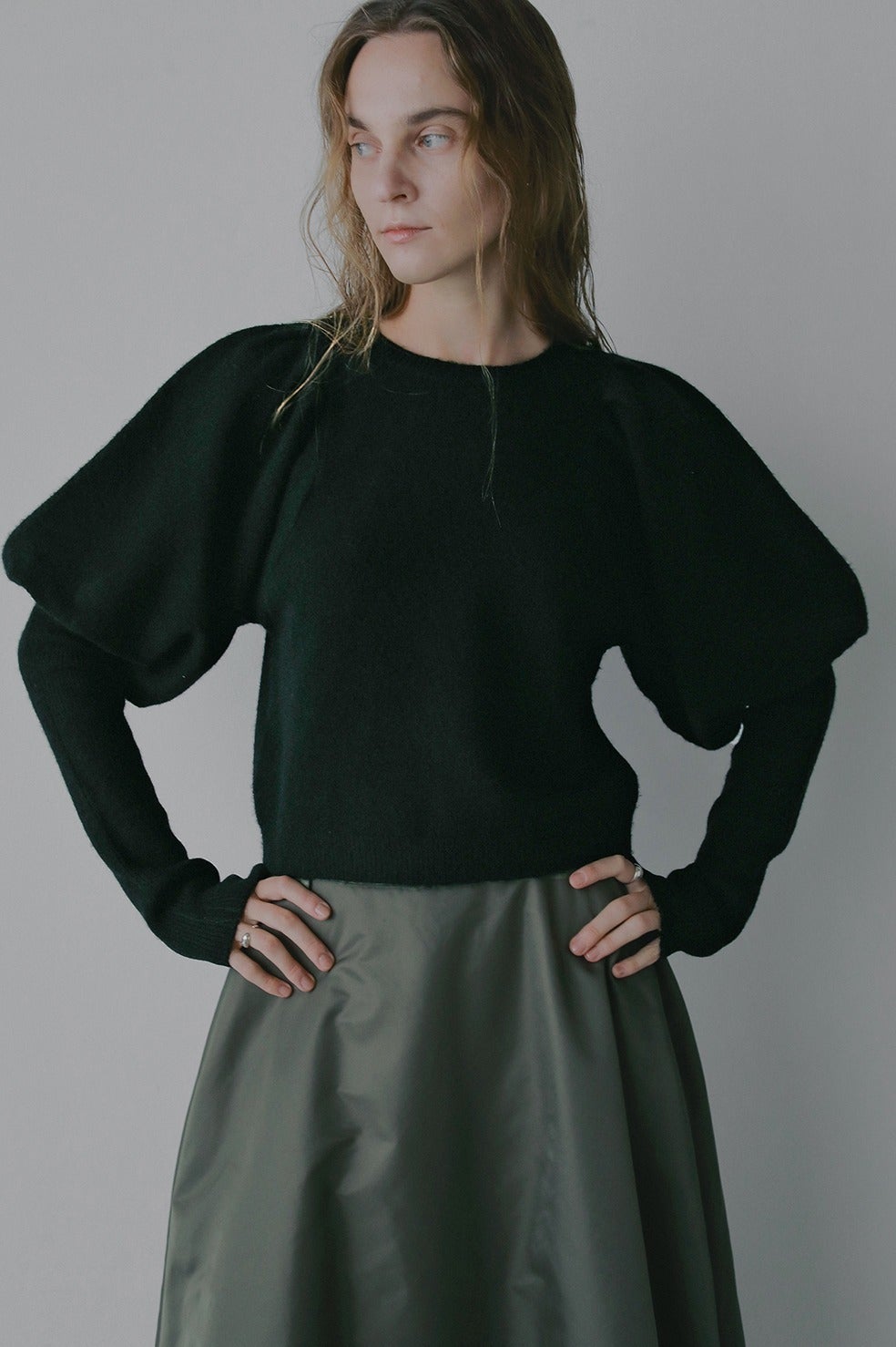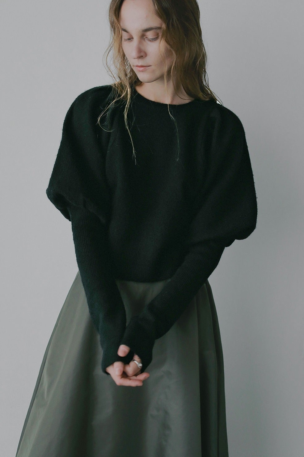 肘上までのパフスリーブが特徴的なニットプルオーバー。