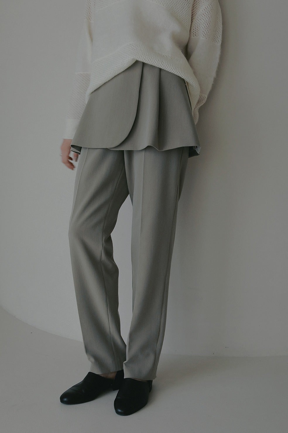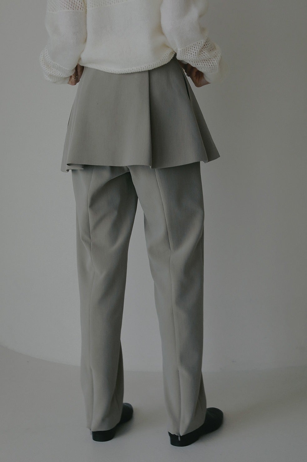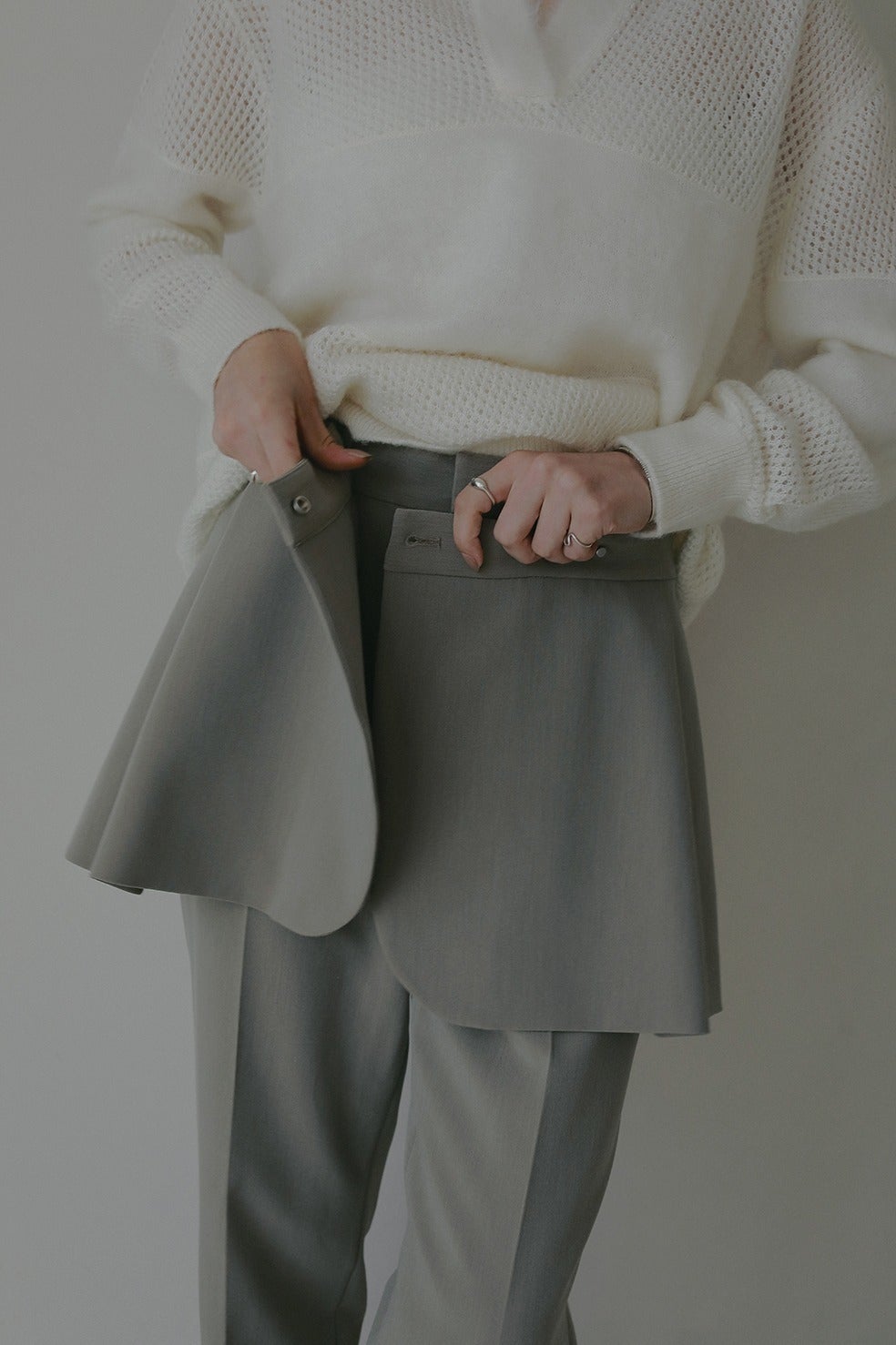 ミニスカートがセットとなったレイヤードスタイルを楽しめるパンツ。