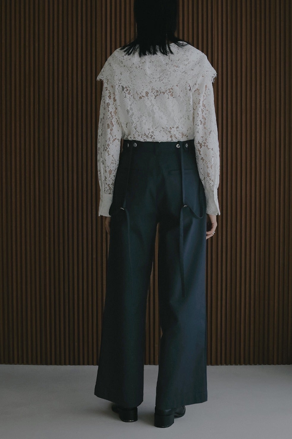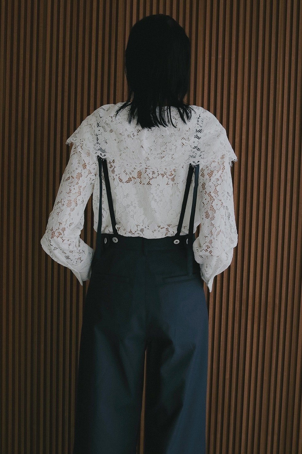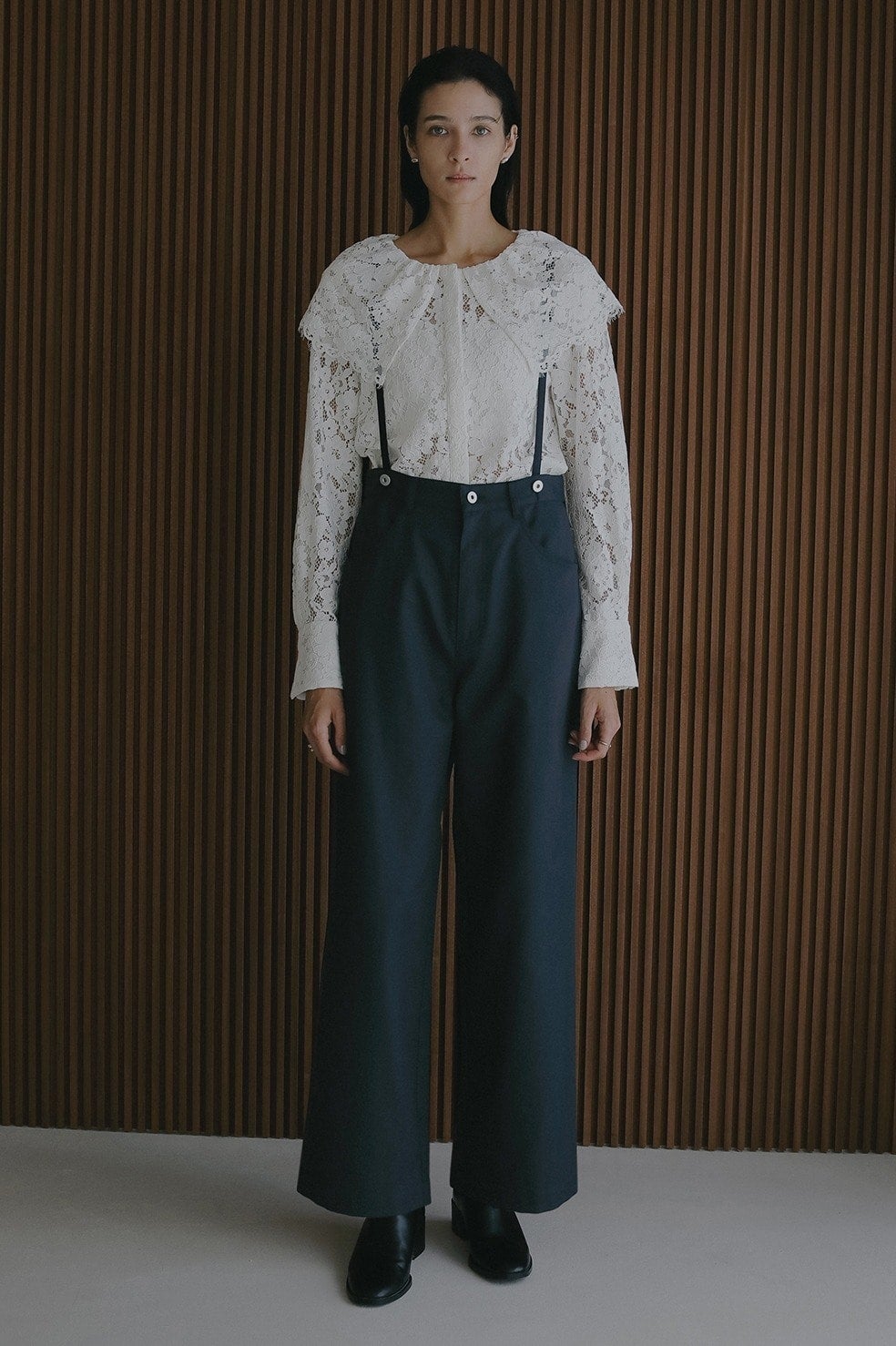 シルエットはややワイドのテーパードシルエットで、サスペンダーは取り外し可能なので、パンツ単体としても着用可能な2wayデザイン。