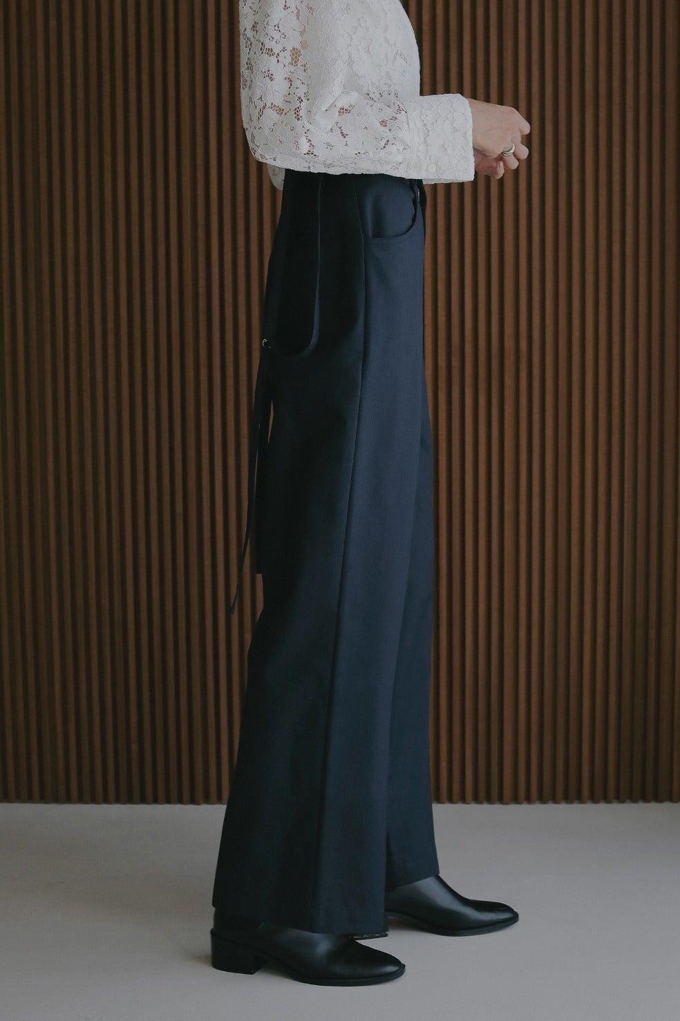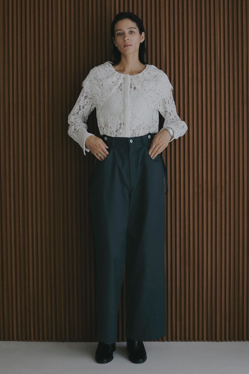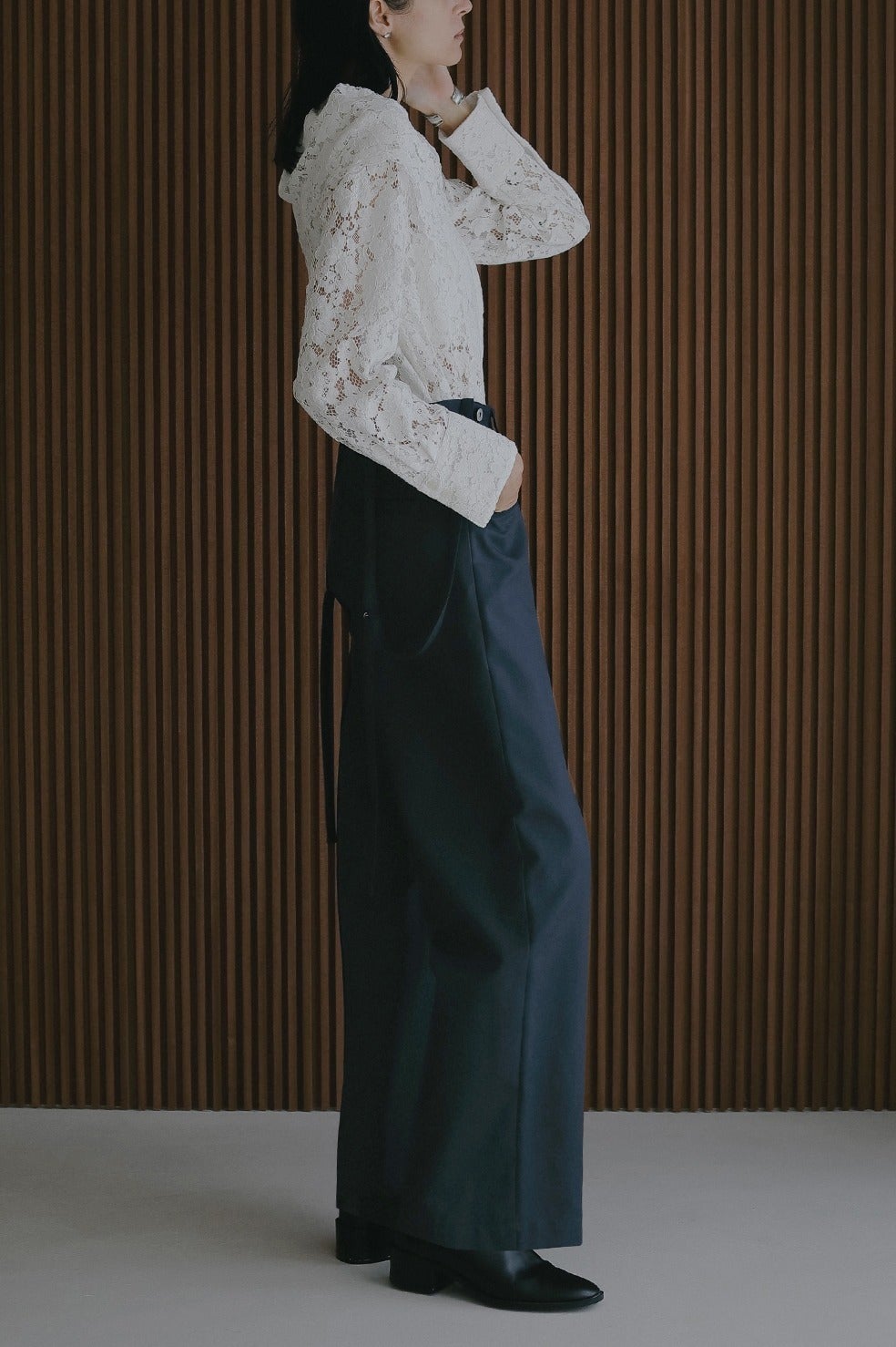 シルエットはややワイドのテーパードシルエットで、サスペンダーは取り外し可能なので、パンツ単体としても着用可能な2wayデザイン。