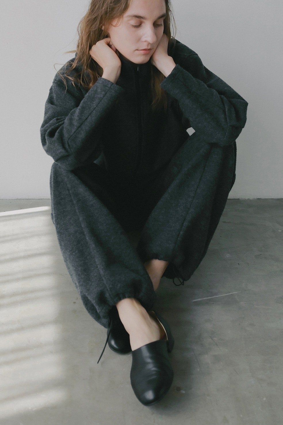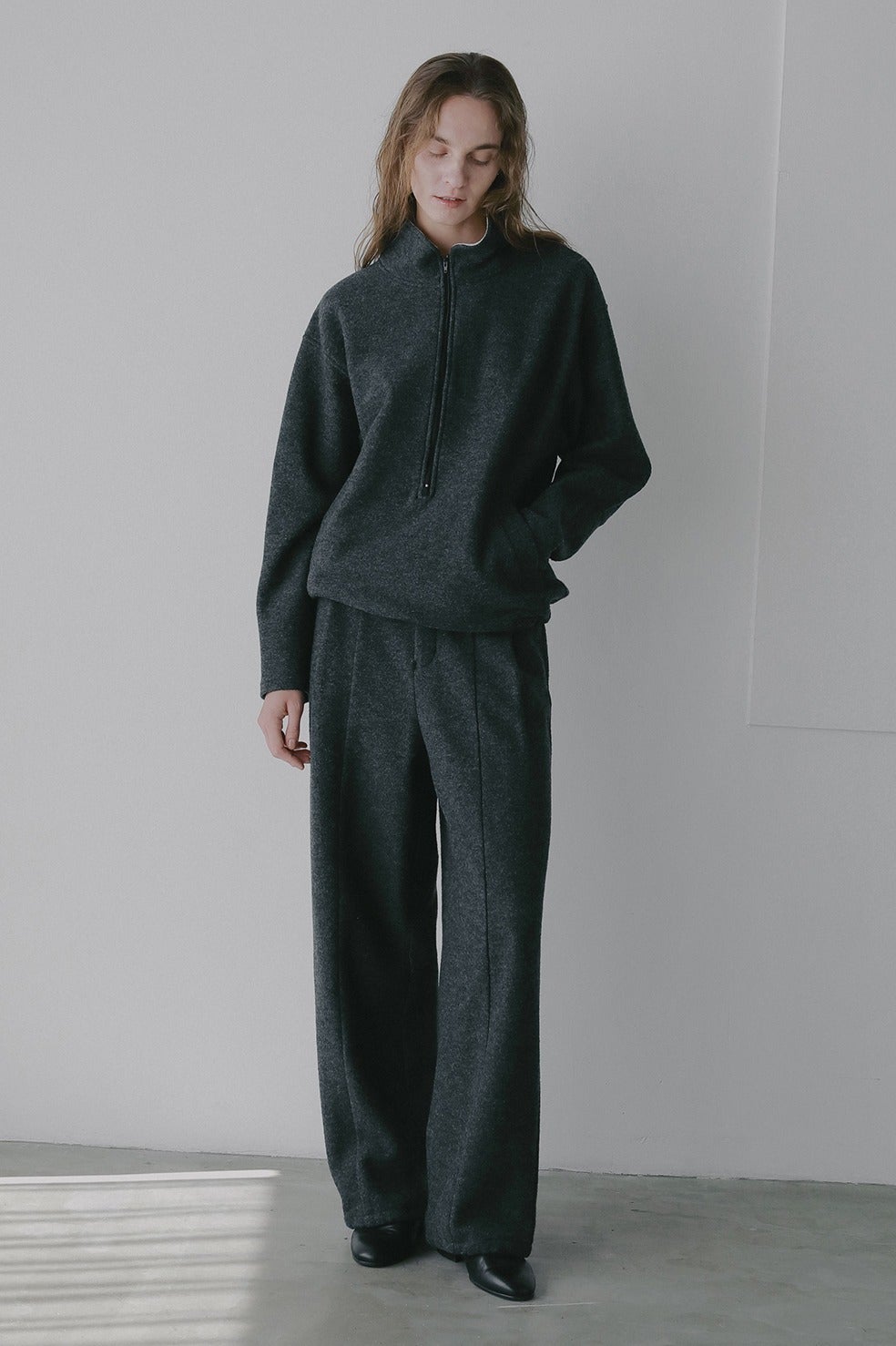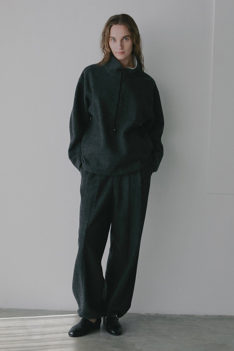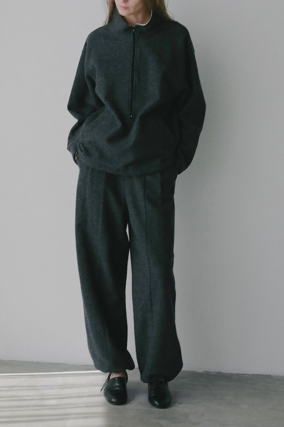同素材のハーフジップトップスとセットアップで着用いただくのがおすすめです。