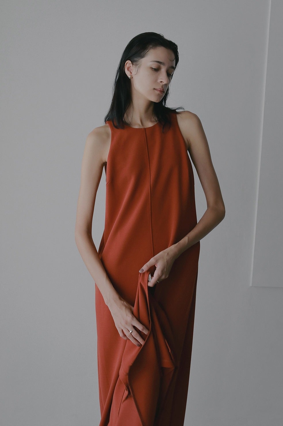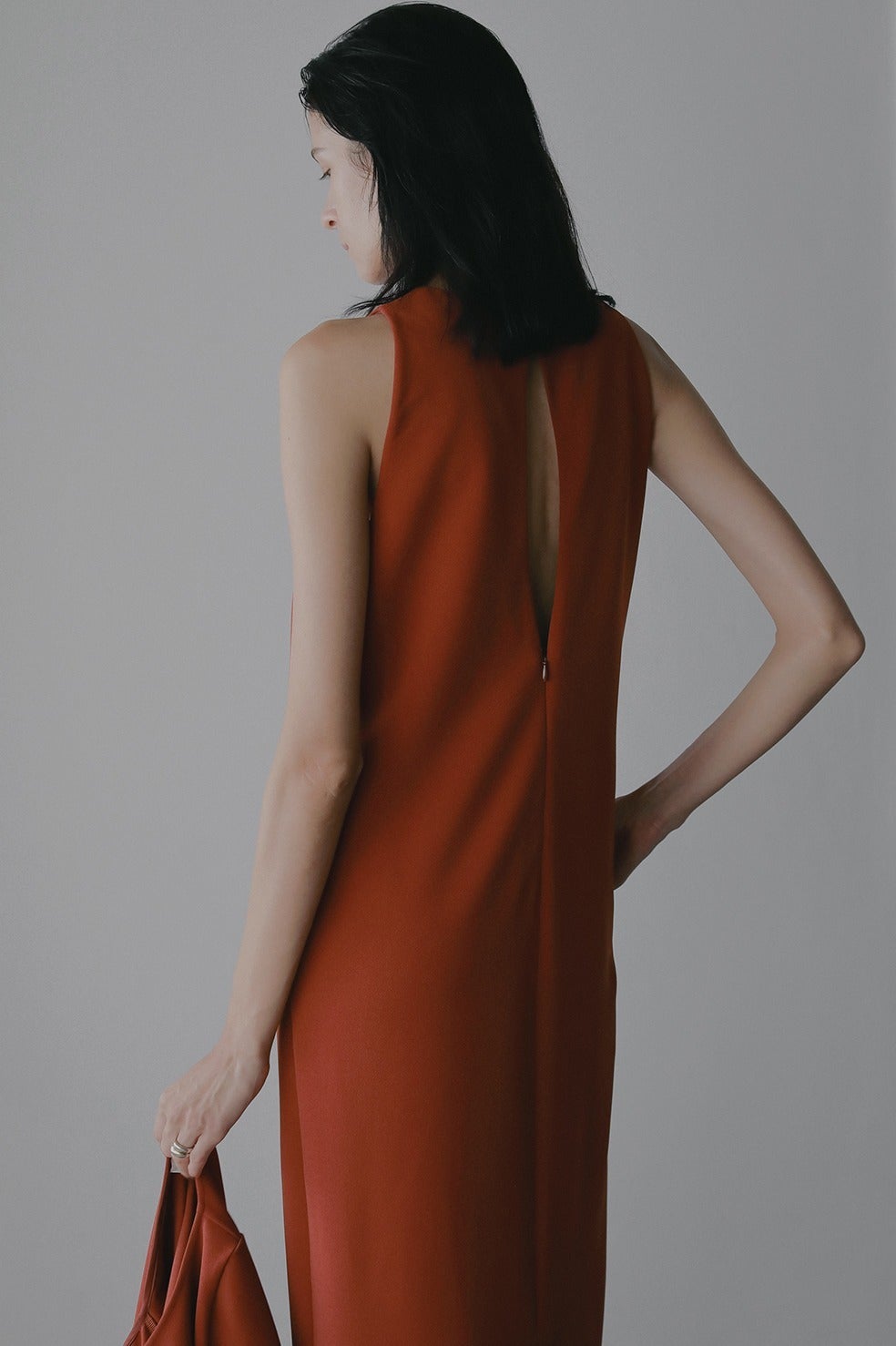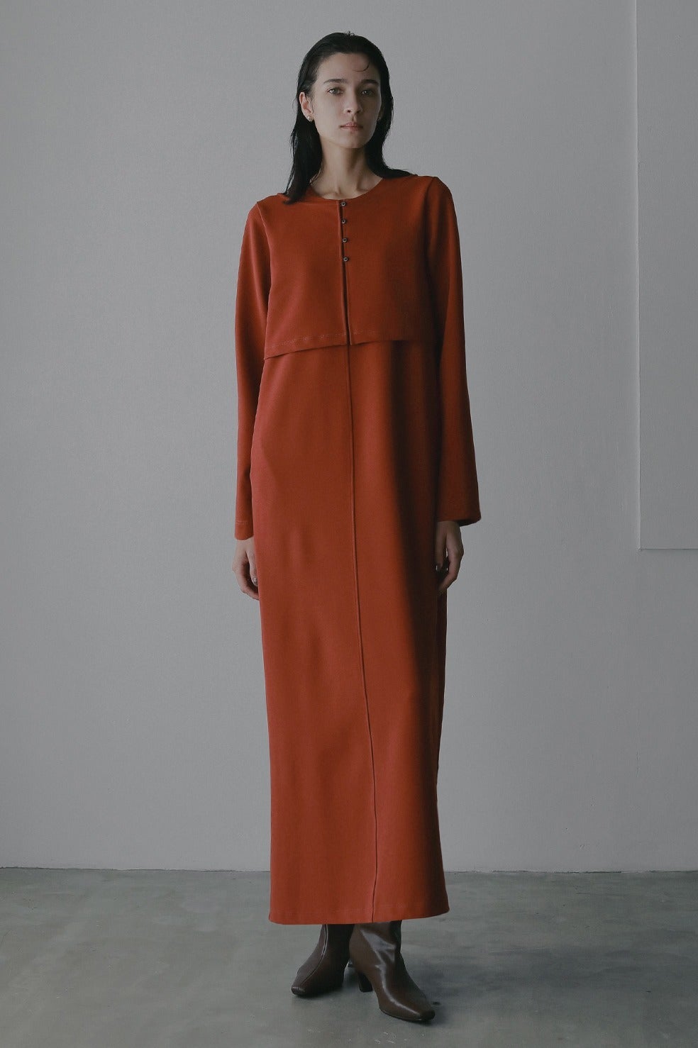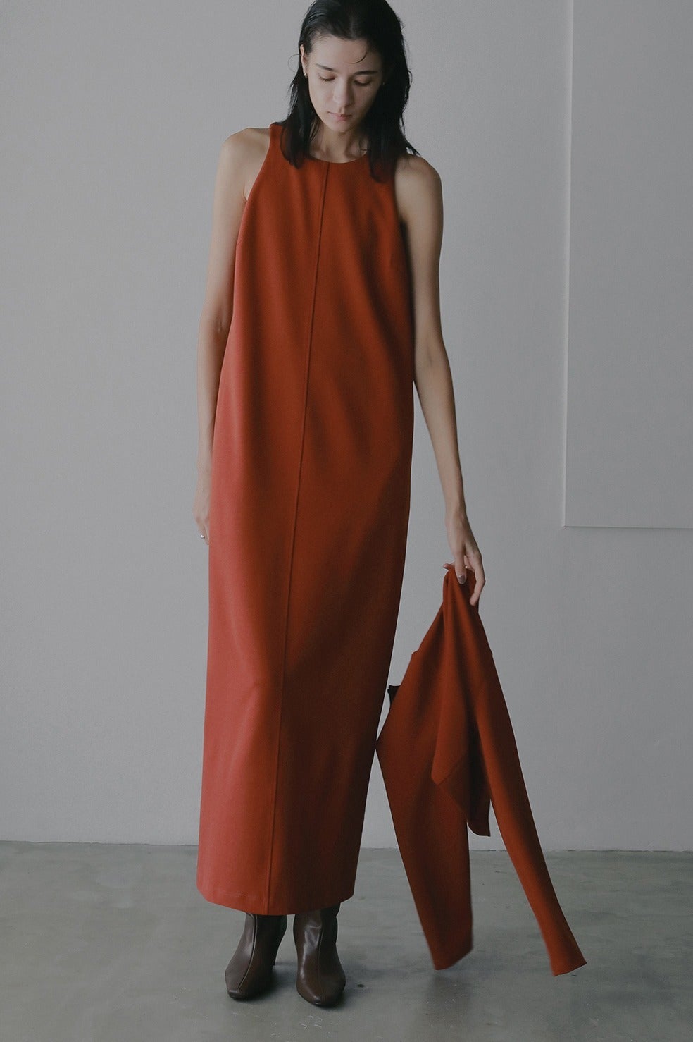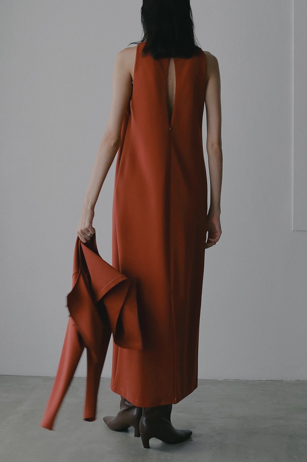 ワンピースは単体で着ても映えるバックスタイルデザインで下に薄めのハイゲージニットなどを合わせたスタイリングも楽しめます。