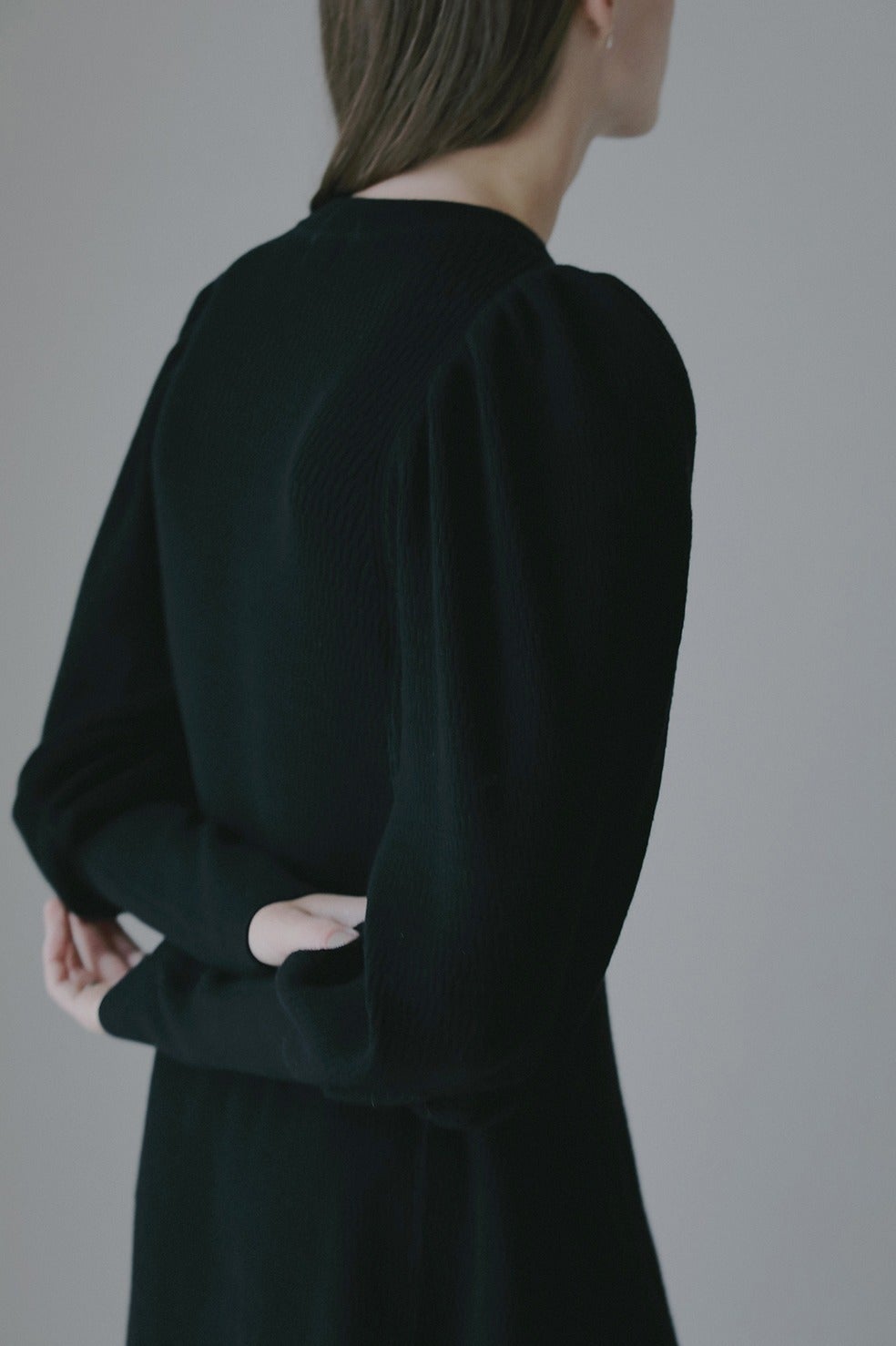 ボリュームを持たせた袖は、リブ部分を長めにすることで手首の華奢さを強調しすっきりと見えるデザインに。