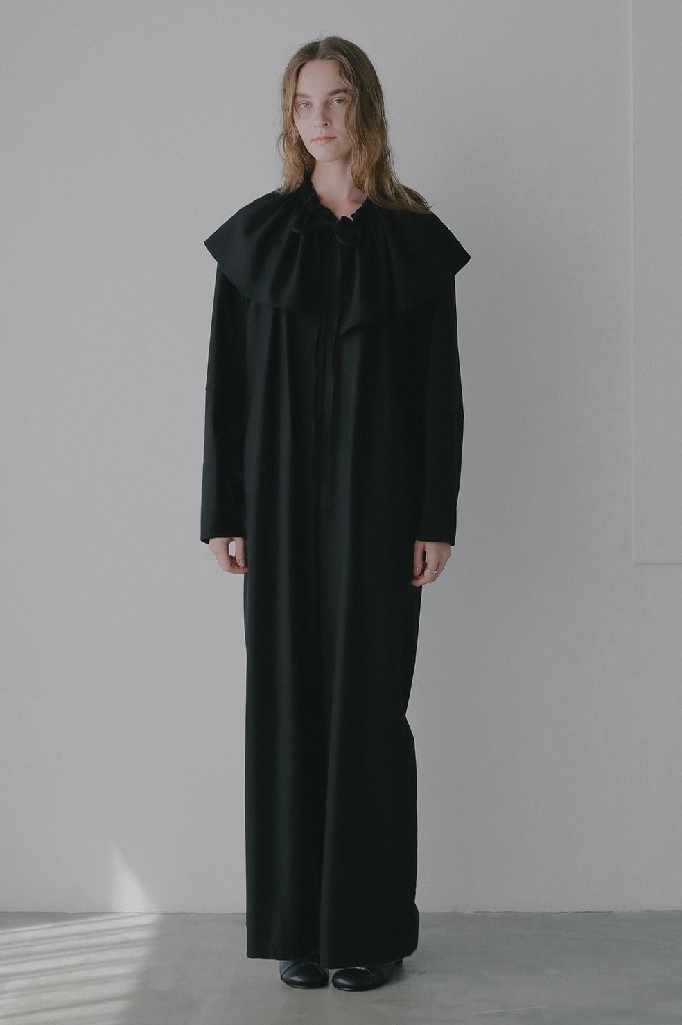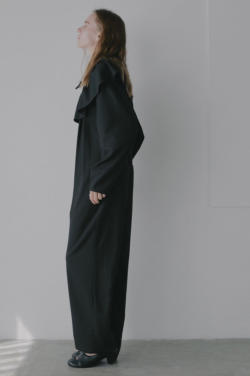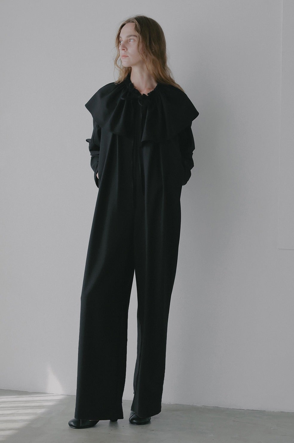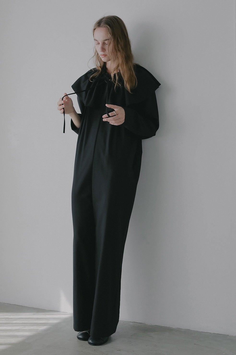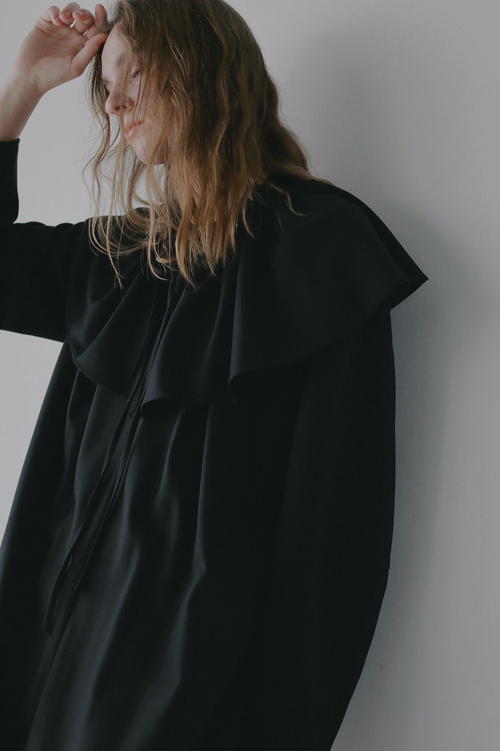 取り外し出来るフリル衿は紐で調整可能なのでお好みのボリュームに調整していただけます。少しオフショル気味に衿を抜いてつけたり、たすき掛けのようにつけたり、ウエストに巻いたりと様々にアレンジしてお使いいただけます。