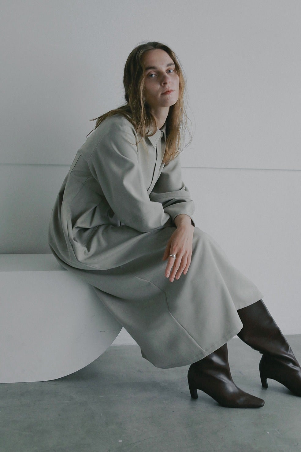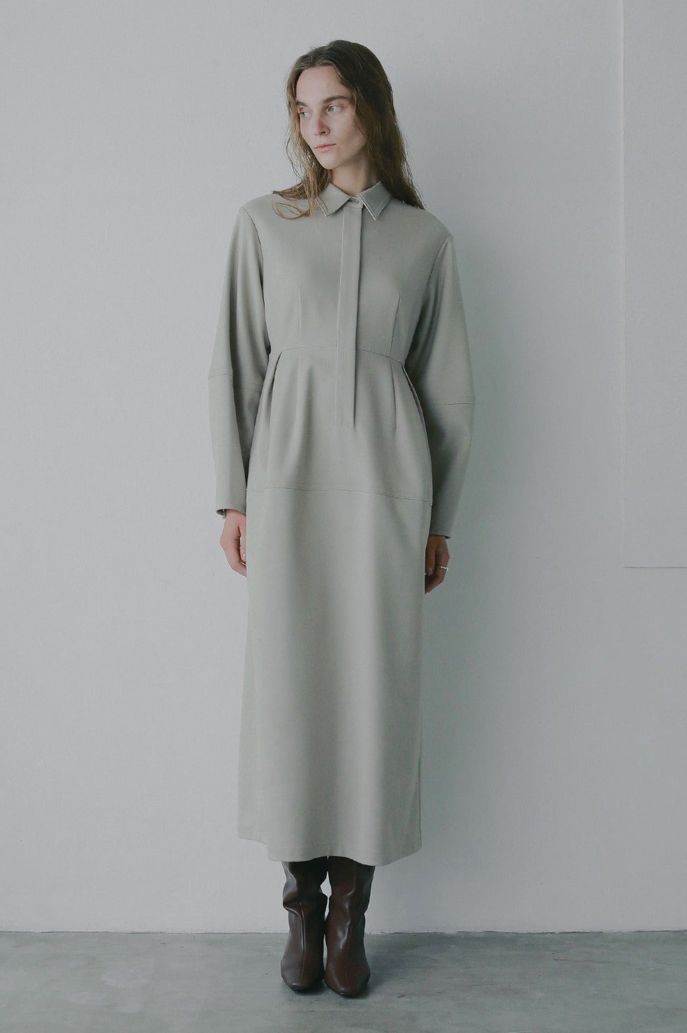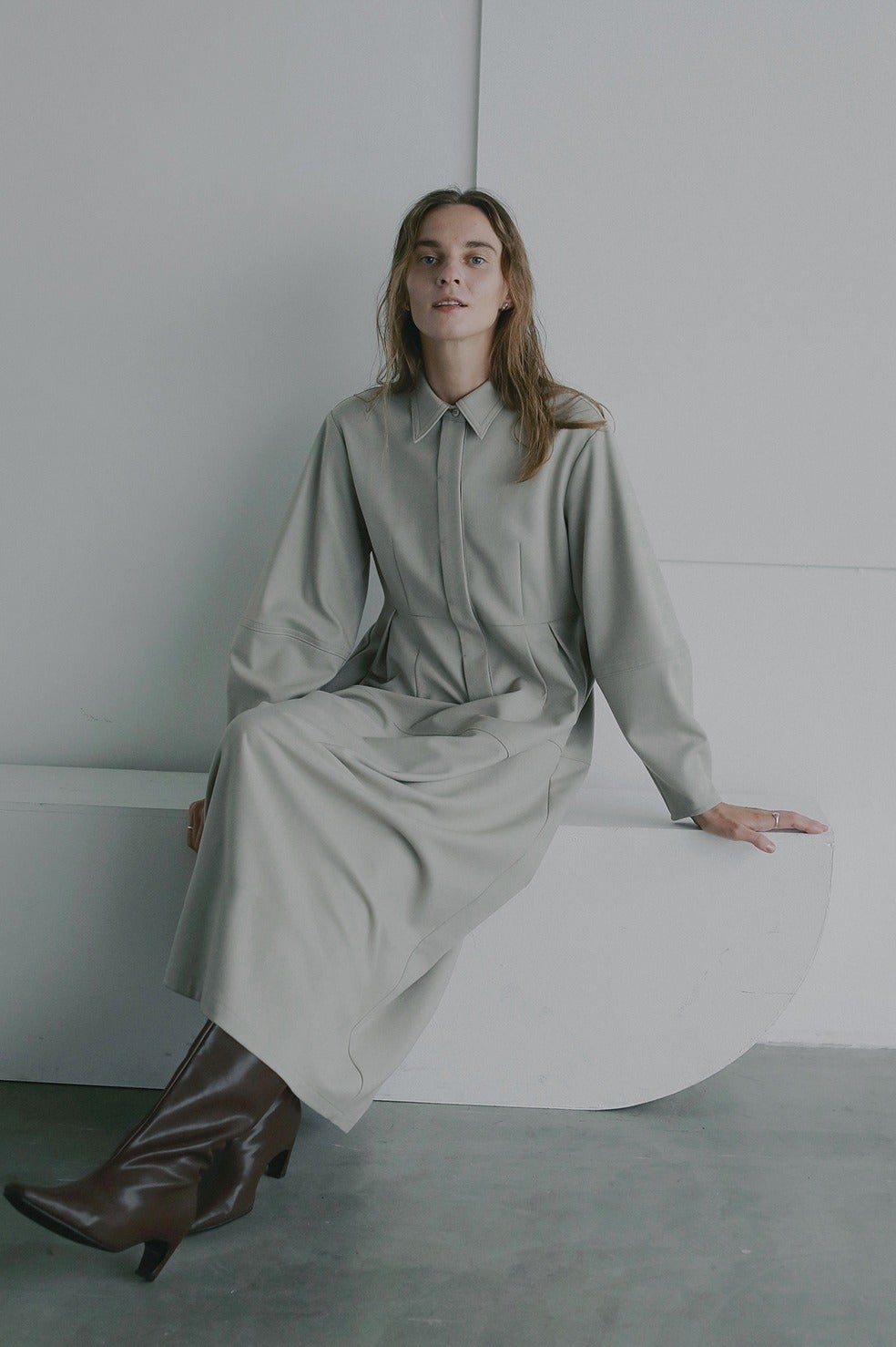 バストからウエストにかけてゆるく身体のラインに沿うよう、ダーツや切り替えを入れた構築的なシルエット。