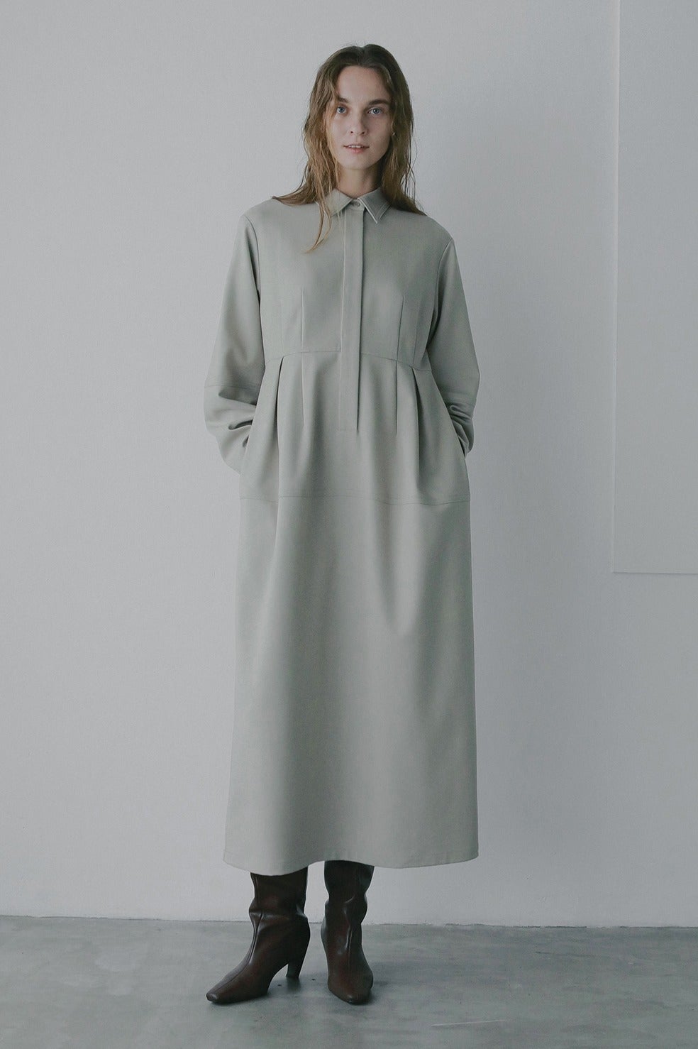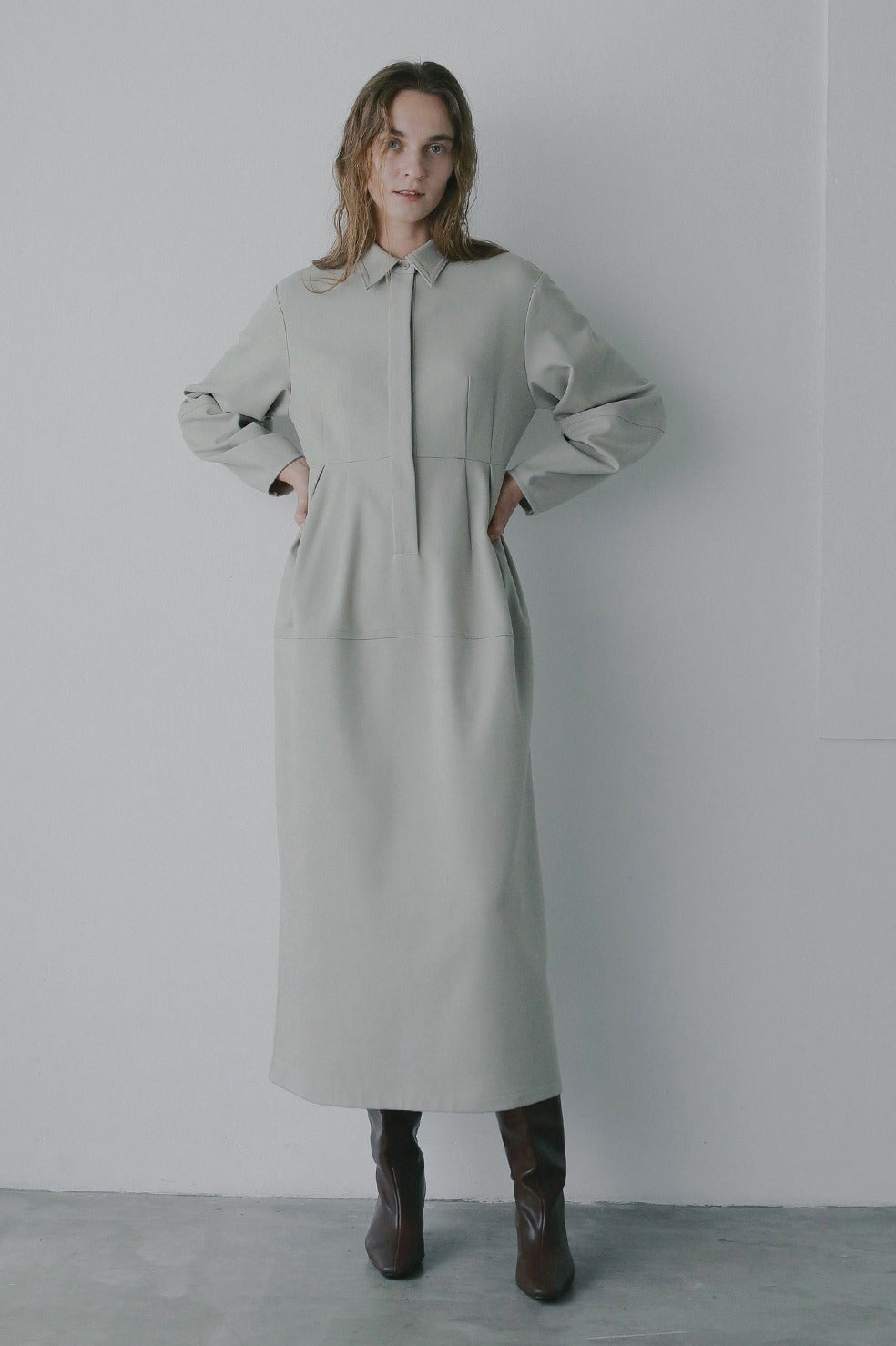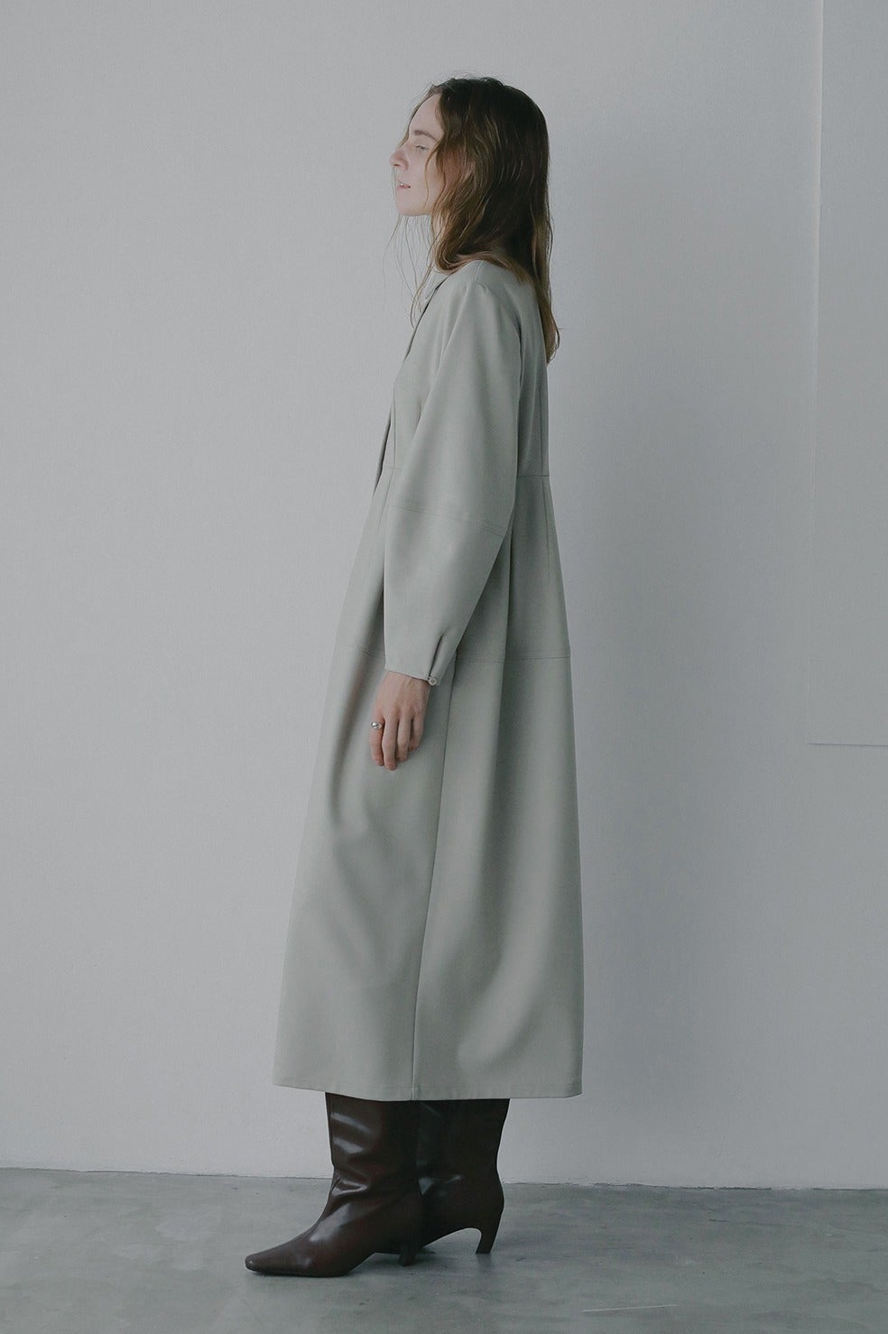 バストからウエストにかけてゆるく身体のラインに沿うよう、ダーツや切り替えを入れた構築的なシルエット。