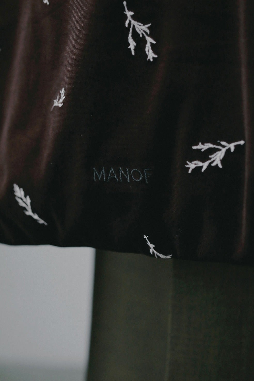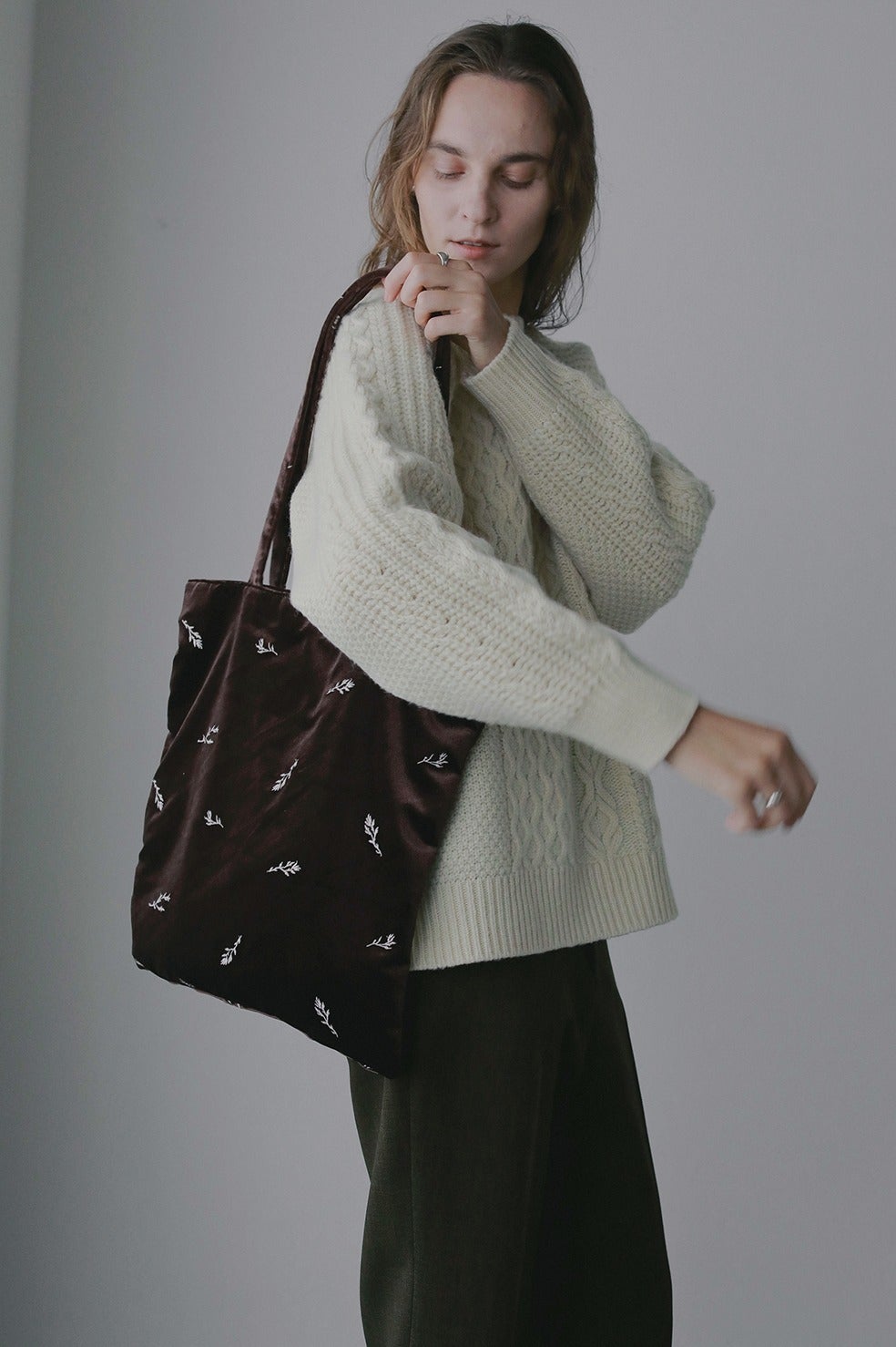 リーフモチーフのオリジナル柄を刺繍加工したベロア生地のオリジナルトート。