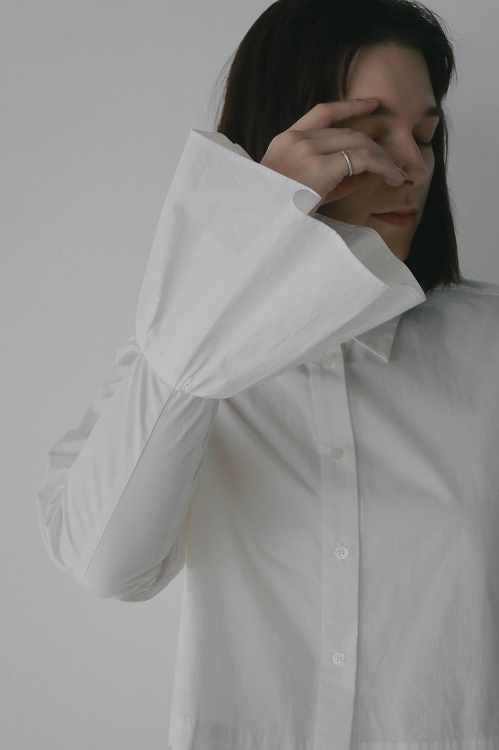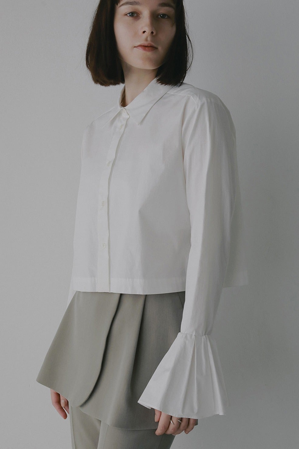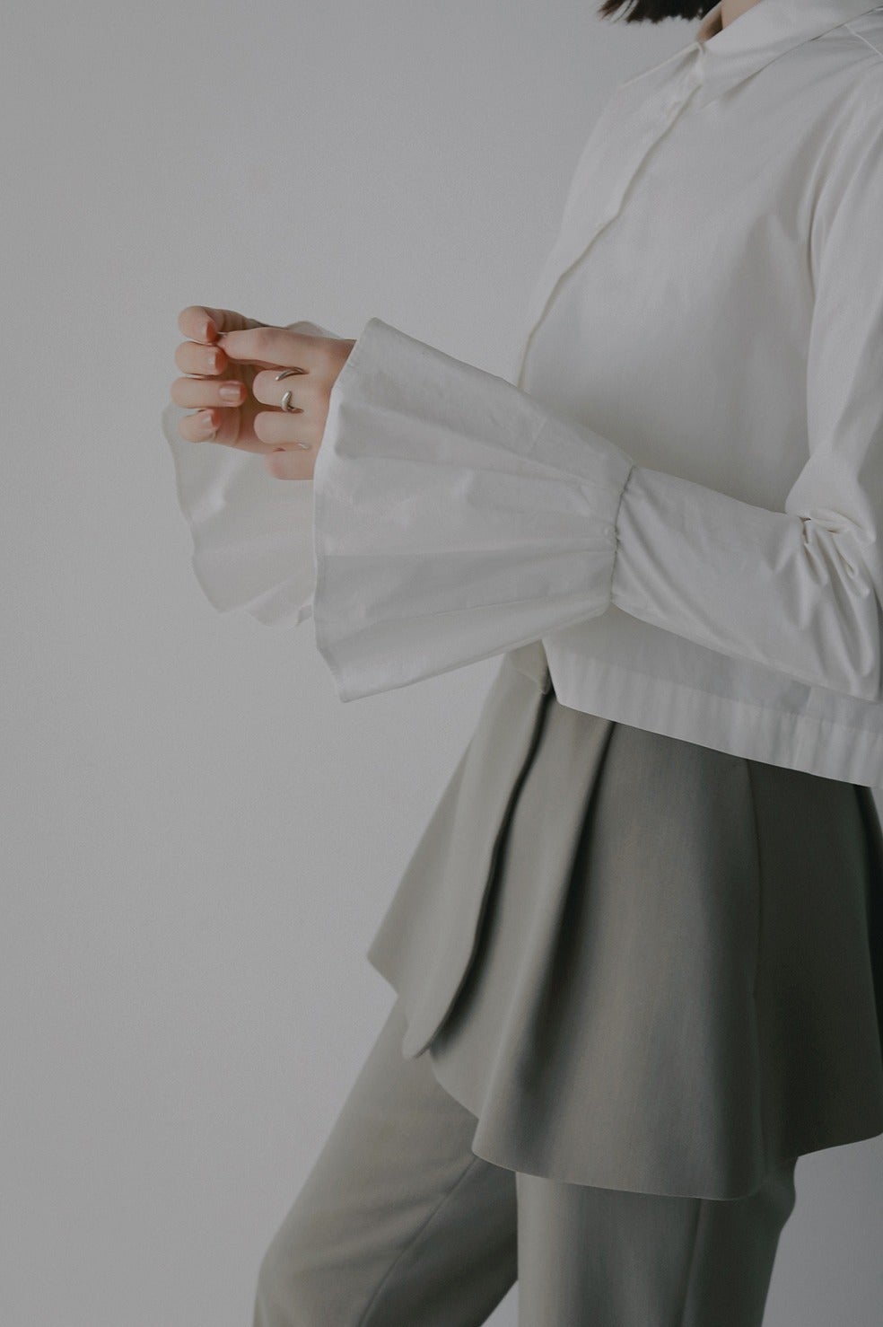 ショート丈と袖のフリルデザインがポイントのシャツ。
