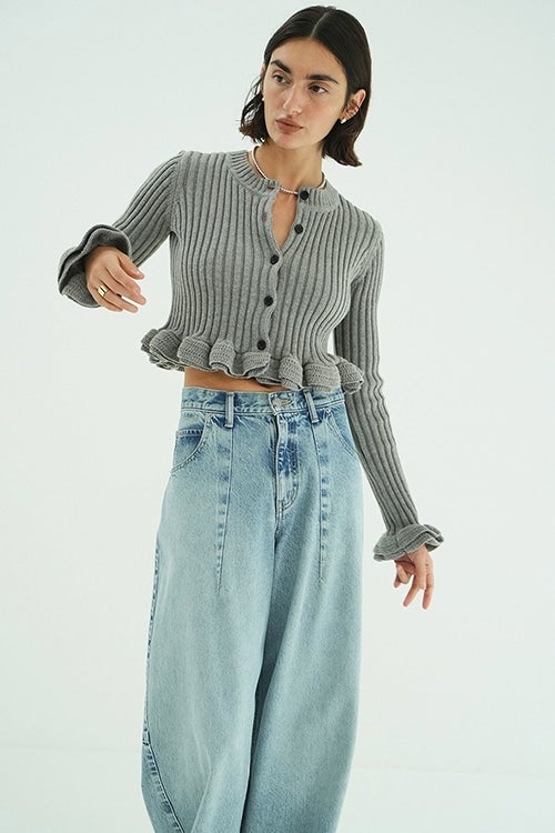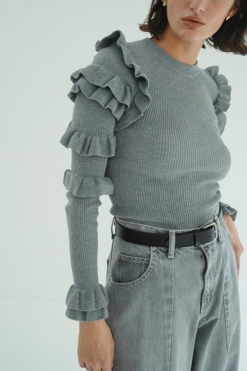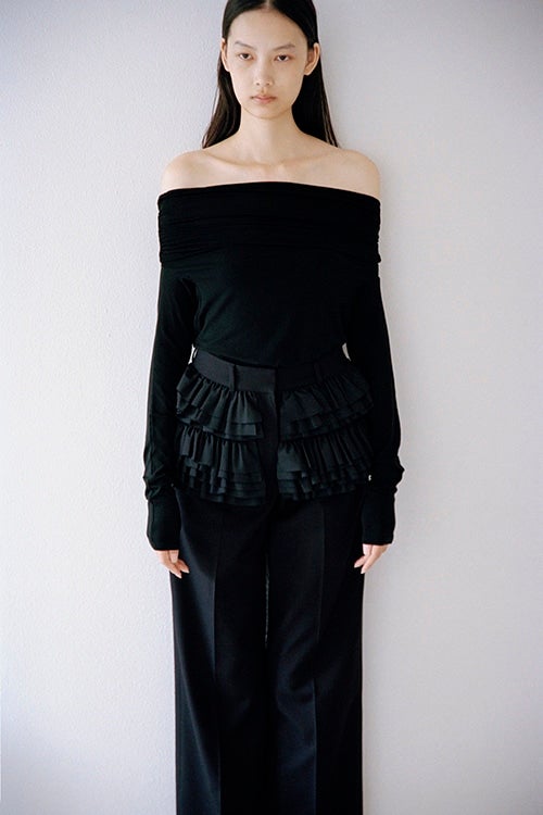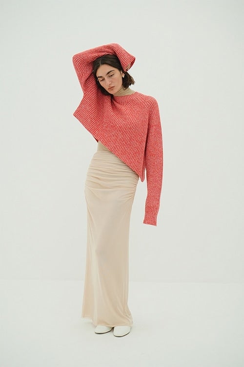 ASYMMETRY WIDE SHORT KNIT TOPS